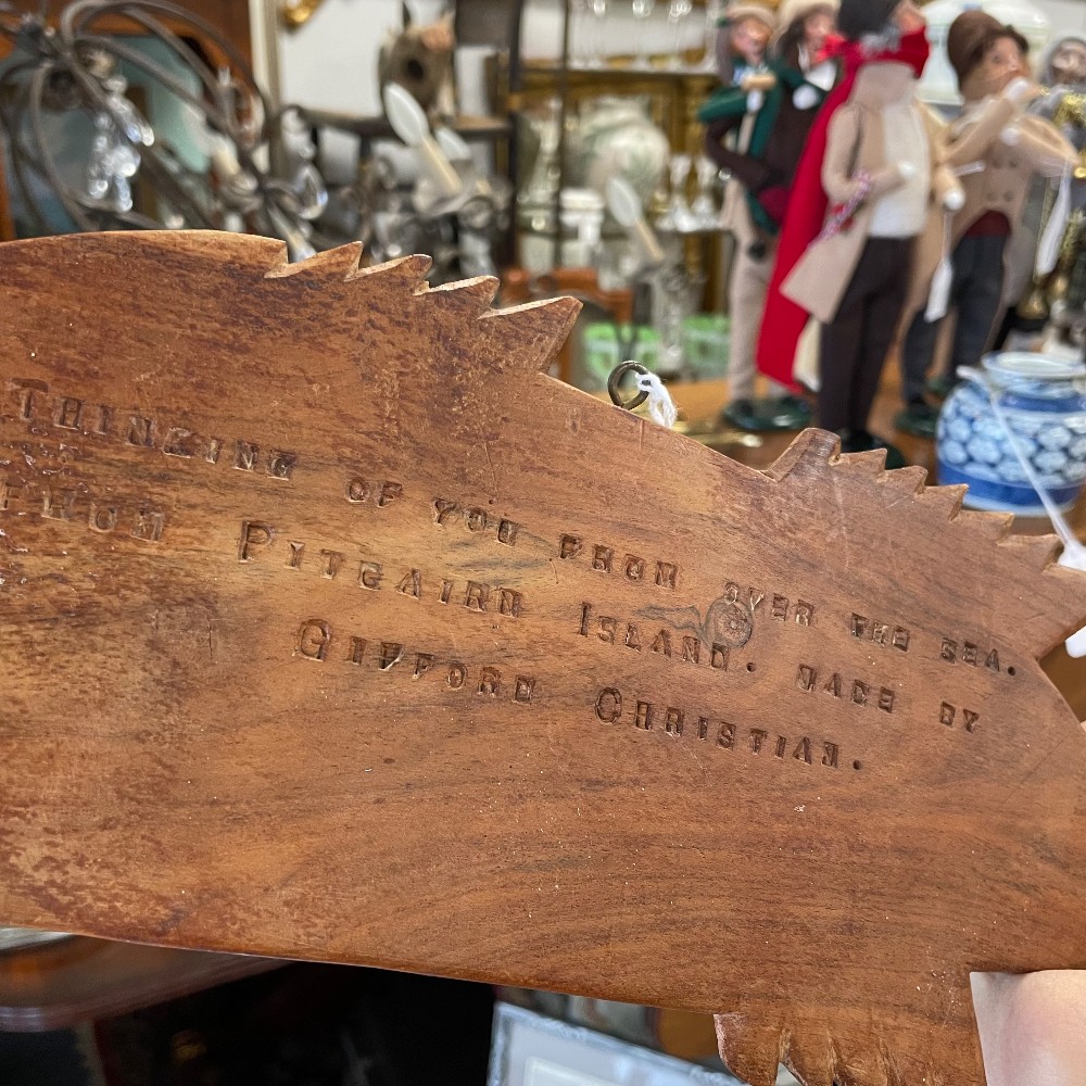 Engraved on back. Measuring 17 1/2"W x 6"T x 4"D. Condition as pictured.
