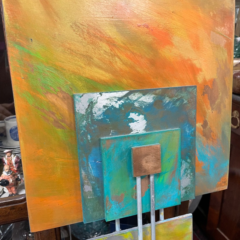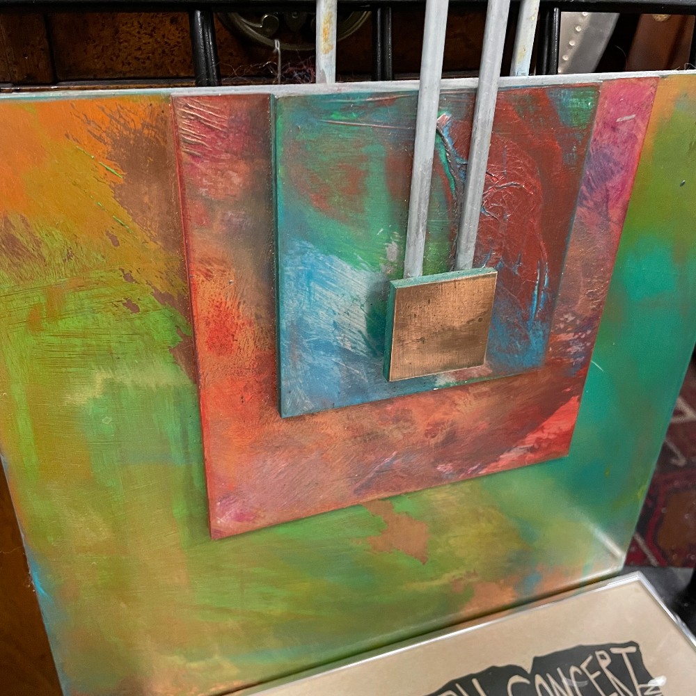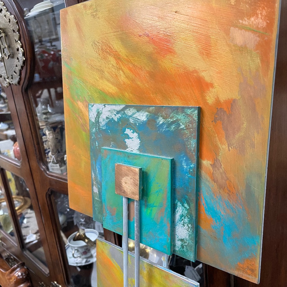 Painted Metal on Wood. Measuring 40 1/2"T x 12"W x 1/4"D