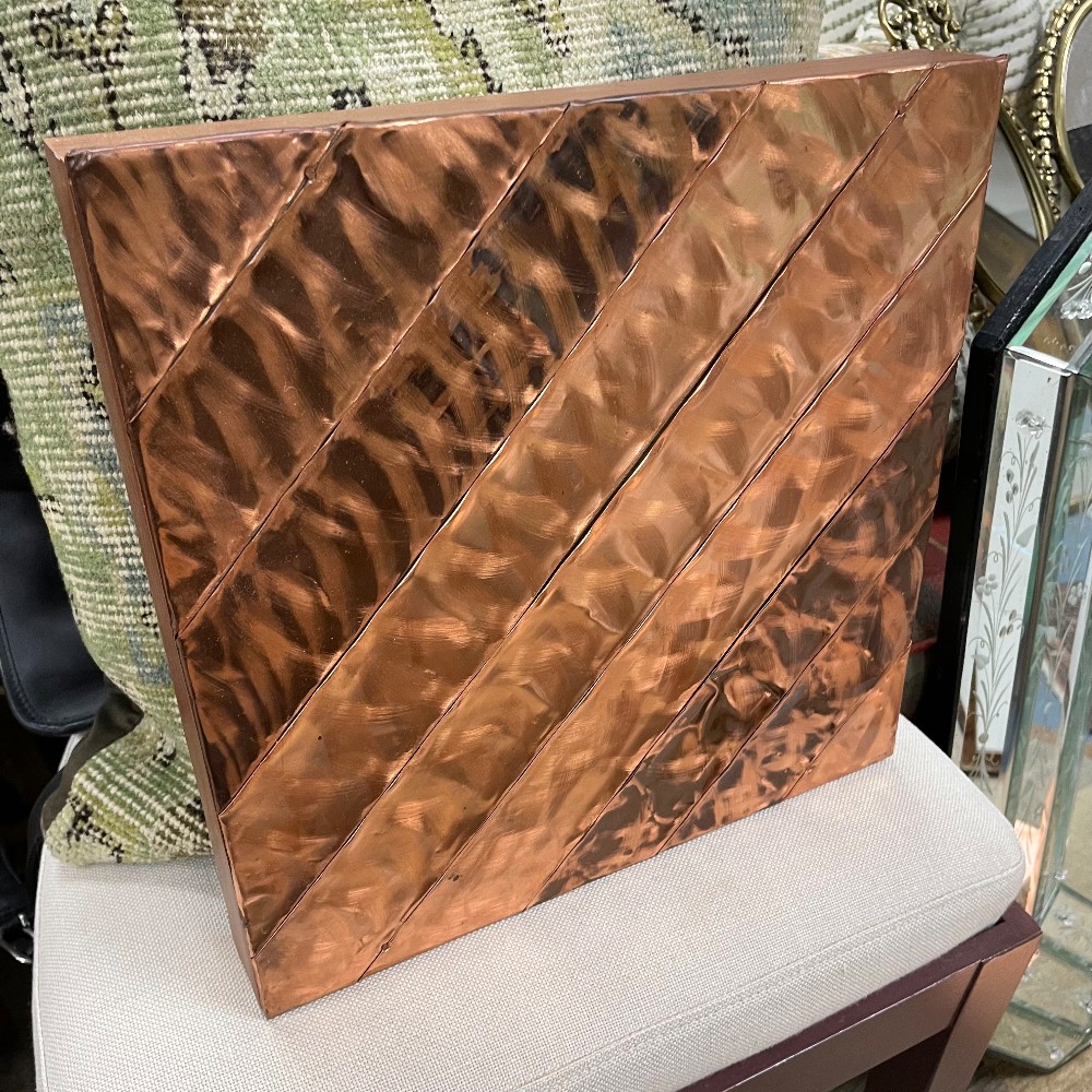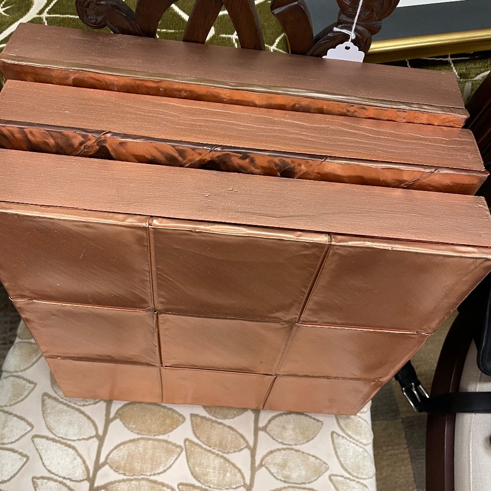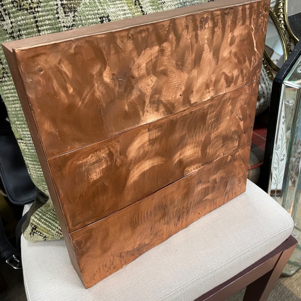 Set of 3. Copper on wood. Measuring 13 1/4"D x 2"D each