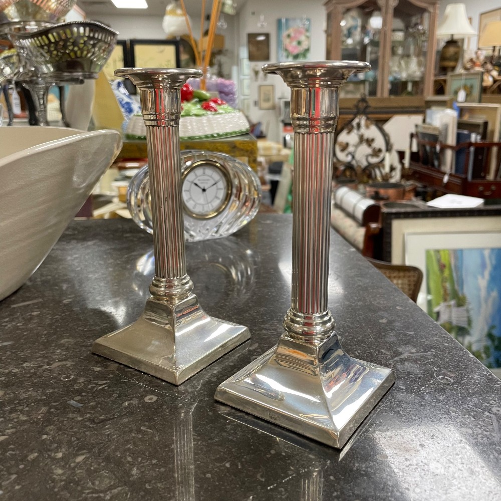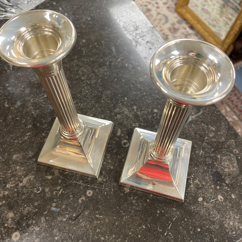 Weighted Sterling. Classical style, fluted column. Measuring 7"T x 3"D. Condition as pictured.