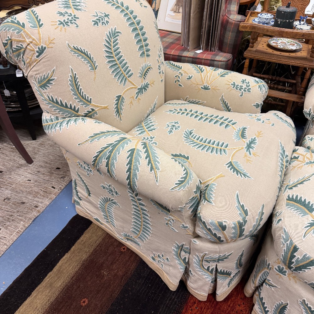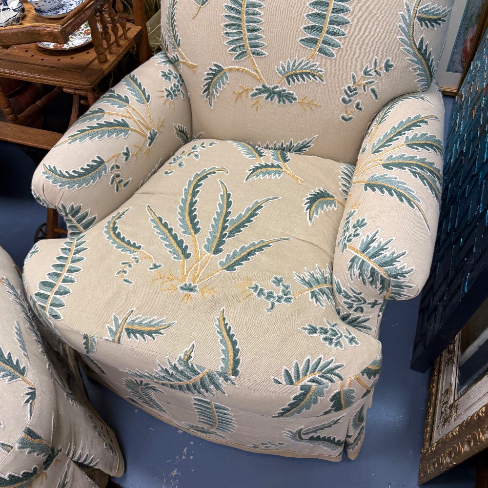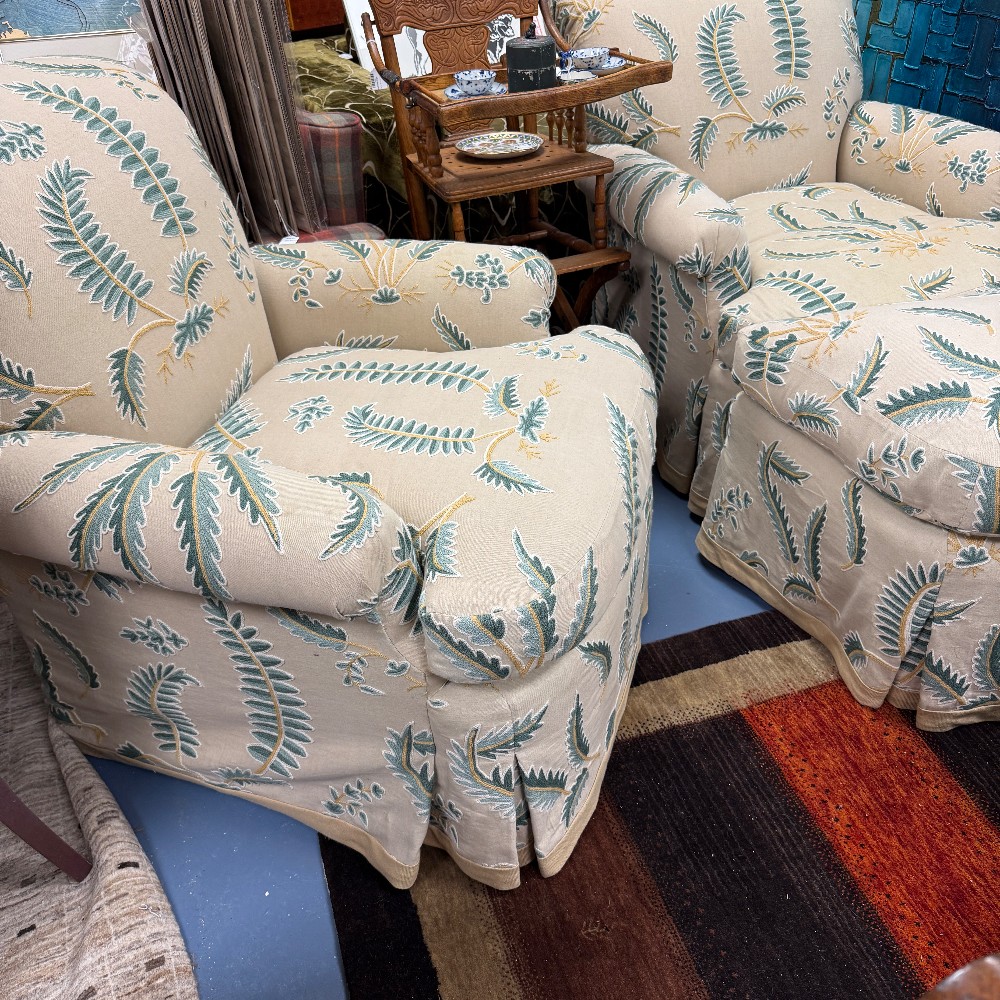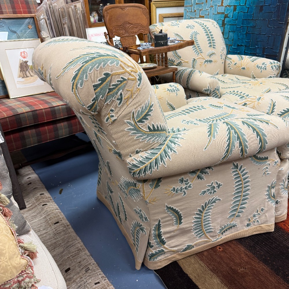 ottoman: 32: x 22: x 18" tall, chair: 34" wide, 24 seat depth, 24 arm height, 19" seat height, 41" deep