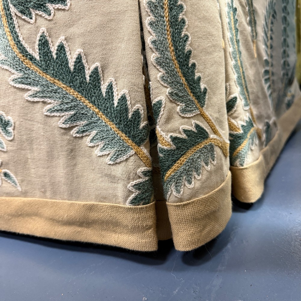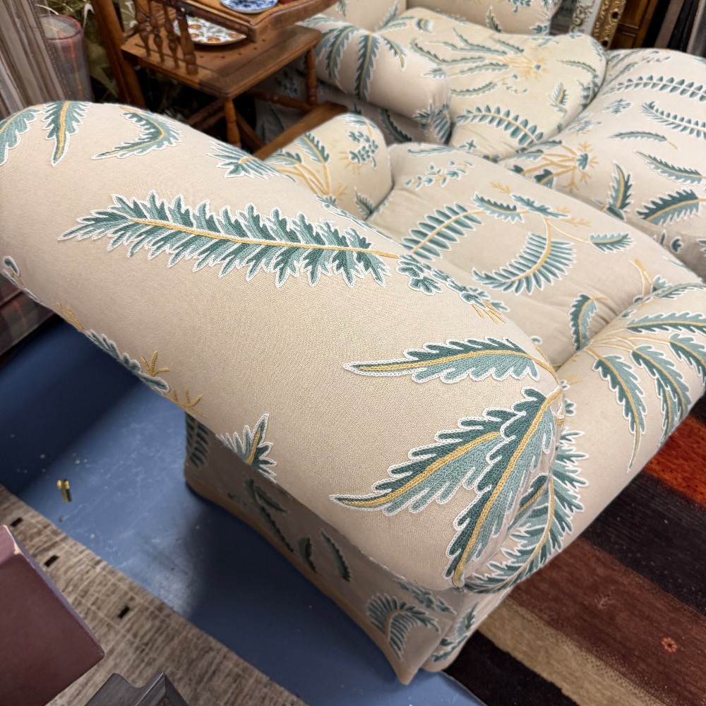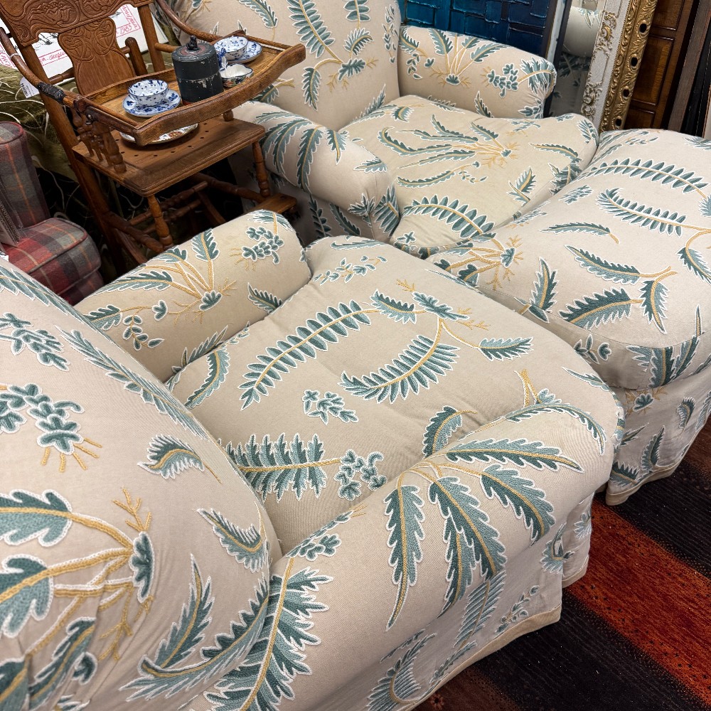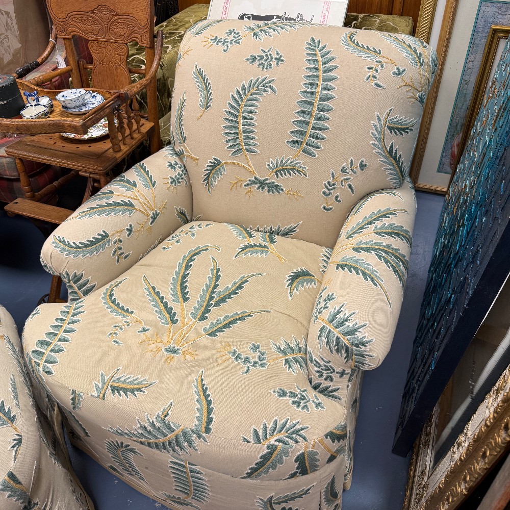 ottoman: 32: x 22: x 18" tall, chair: 34" wide, 24 seat depth, 24 arm height, 19" seat height, 41" deep