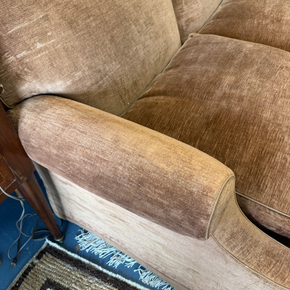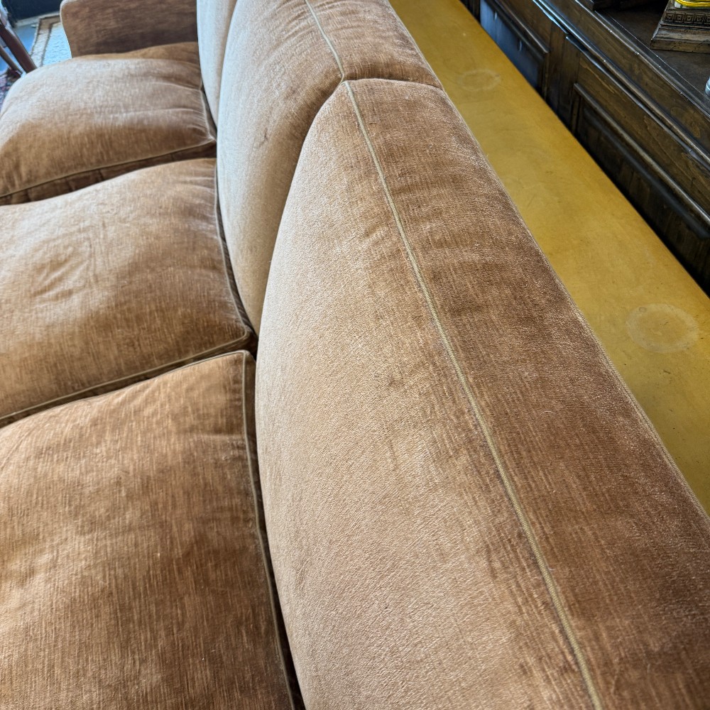 100" wide, three pillow seat, 25" arm height, 36.6" back height, 37" deep, seat depth 27" down, foam, custom designer