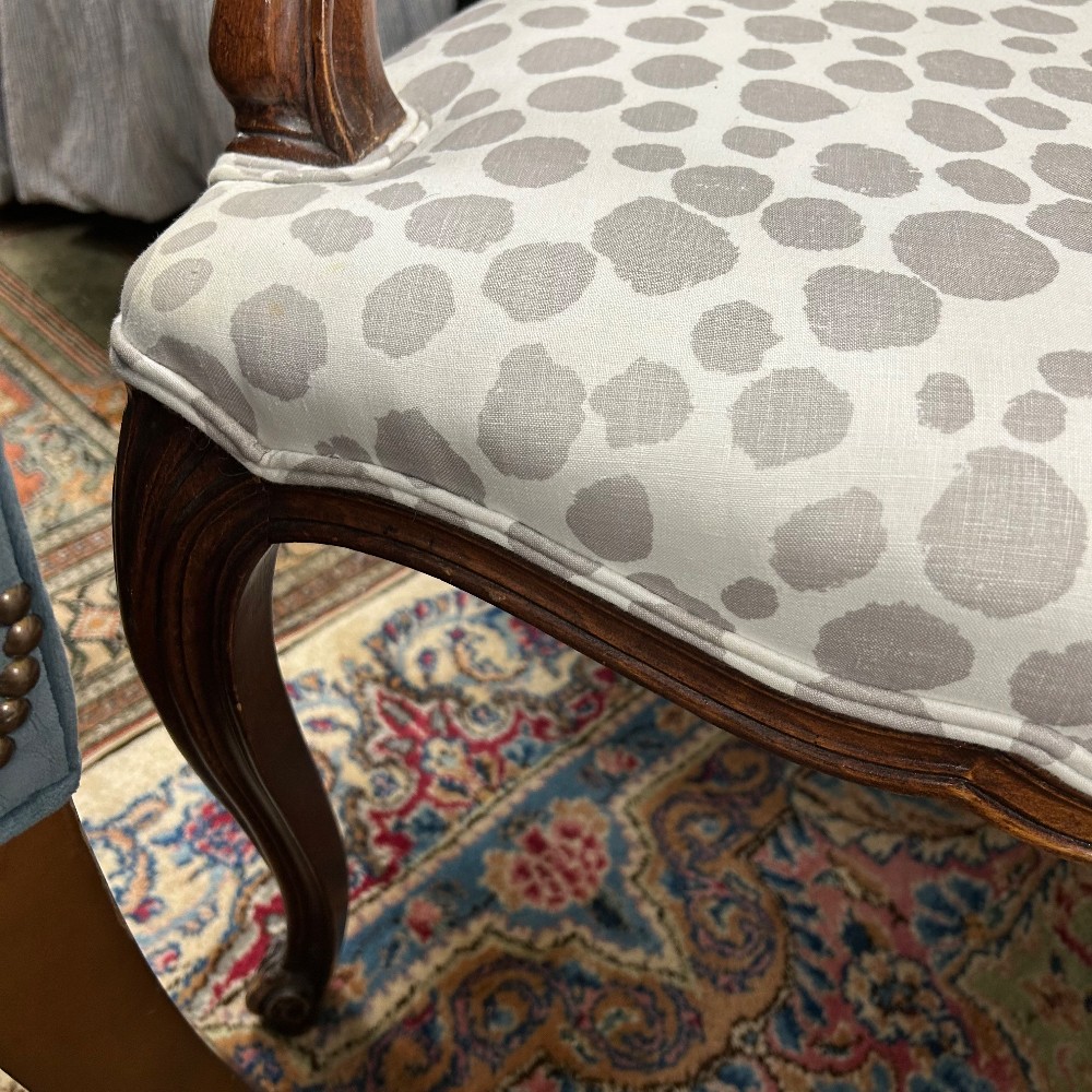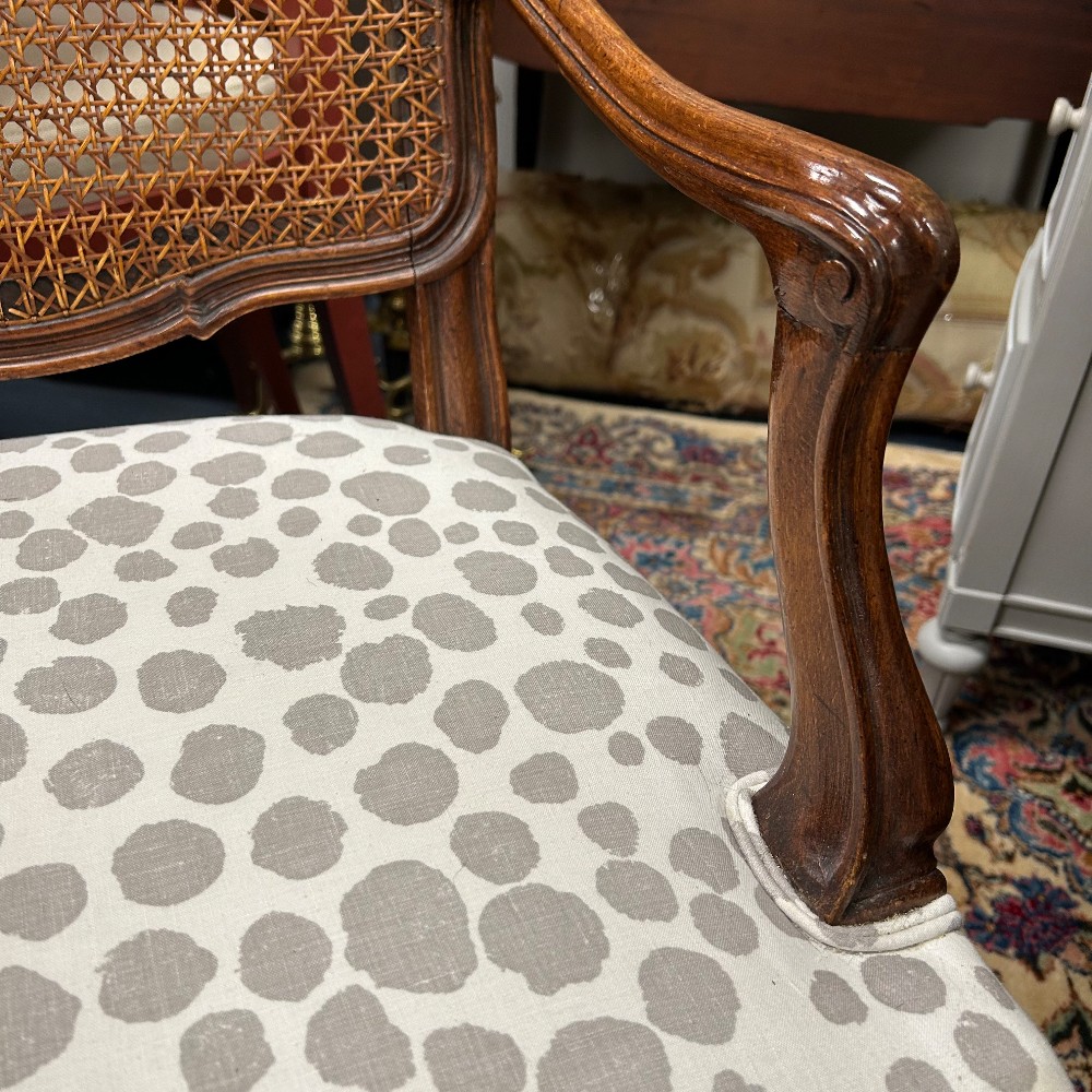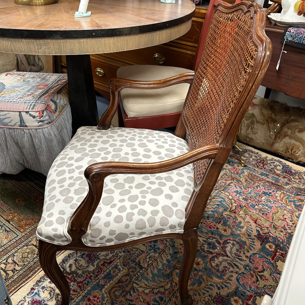 w/ Newly Upholstered Seat Measuring 36 1/2"T x 22 1/2"W x 20"D x 17" seat height x 25 1/4" arm height. Condition as pictured