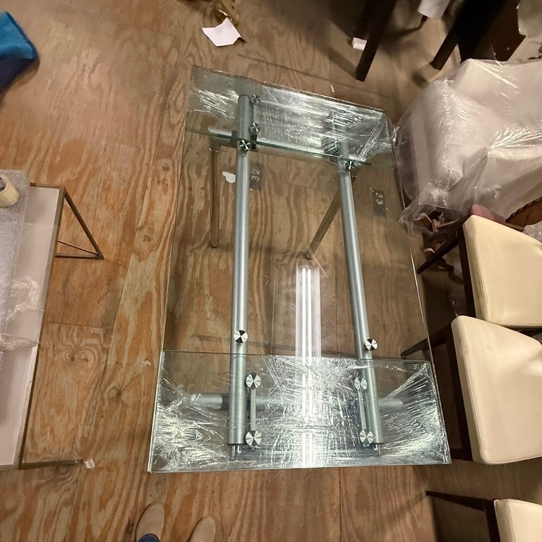two extensions : 12" each and without extensions, the table measures 30" tall, 31.5" wide and 56" long (+ ext 80" long)