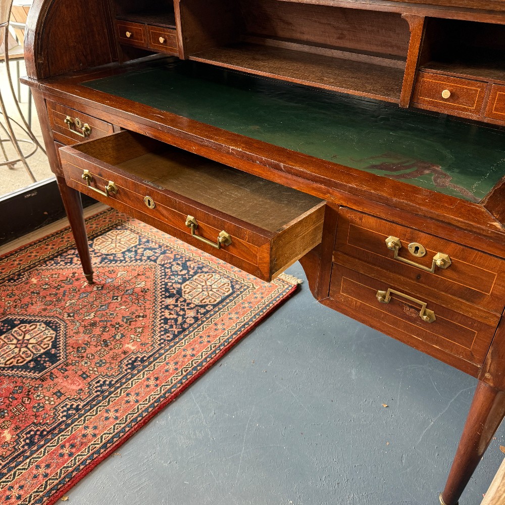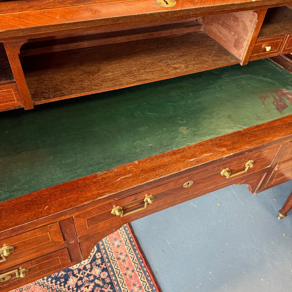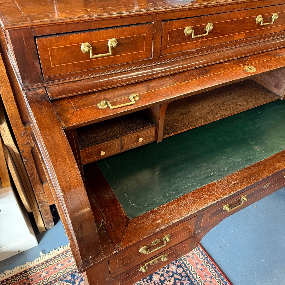 55" wide, 47.5" tall and 25" deep - knee hole dimensions: 22" h x 21" w