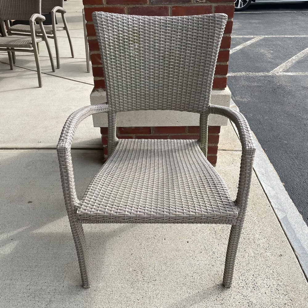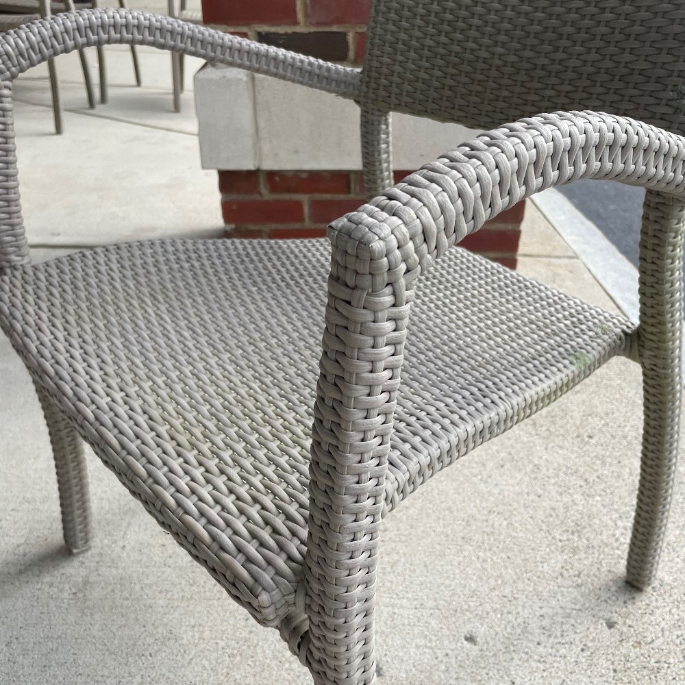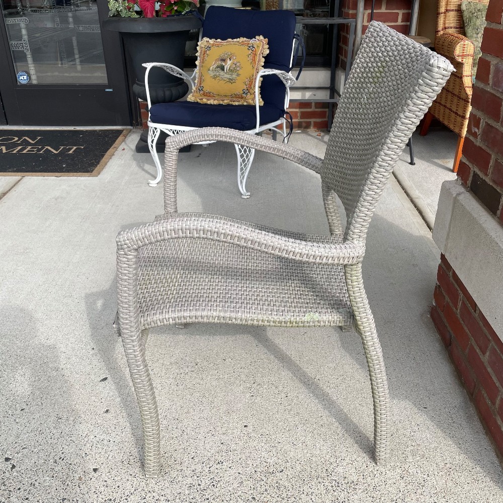 Powder coated aluminum w. handwoven synthetic fiber. Measuring 35.5"T x 23"W x 21"D x 17" seat height