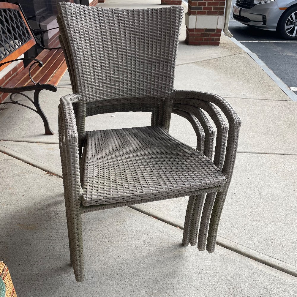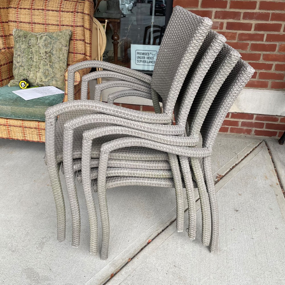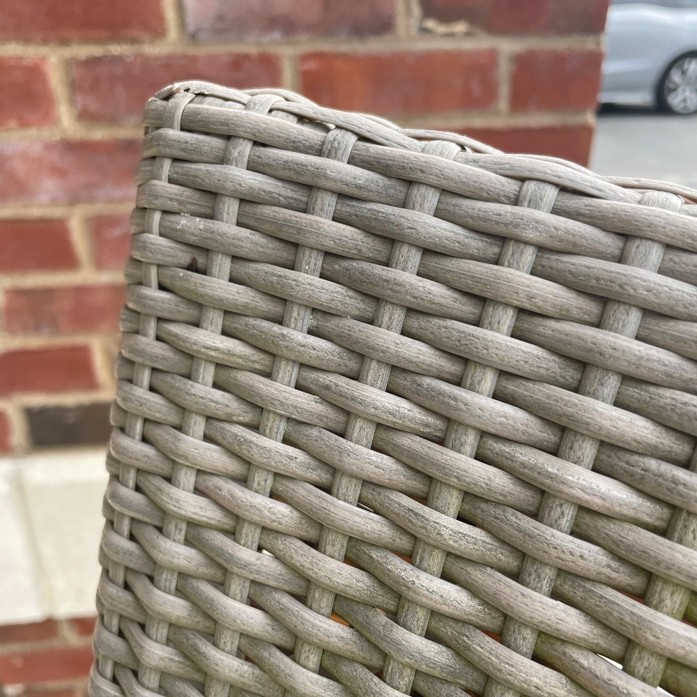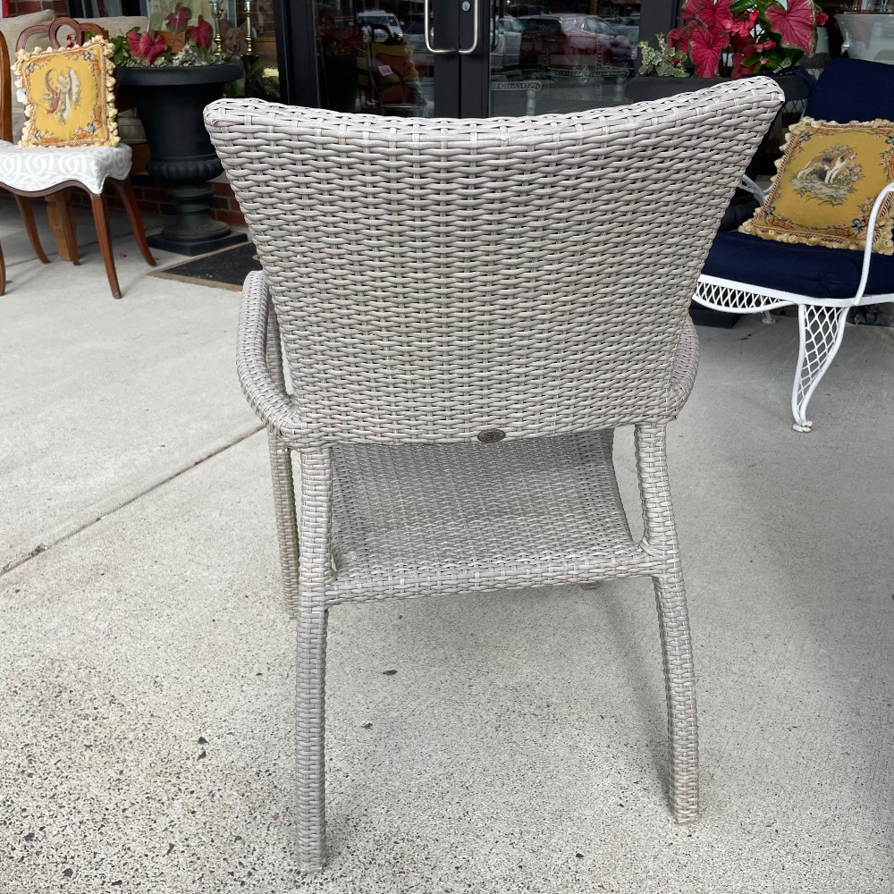 Powder coated aluminum w. handwoven synthetic fiber. Measuring 35.5"T x 23"W x 21"D x 17" seat height
