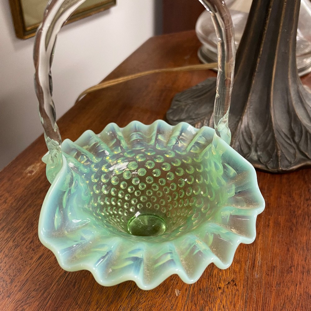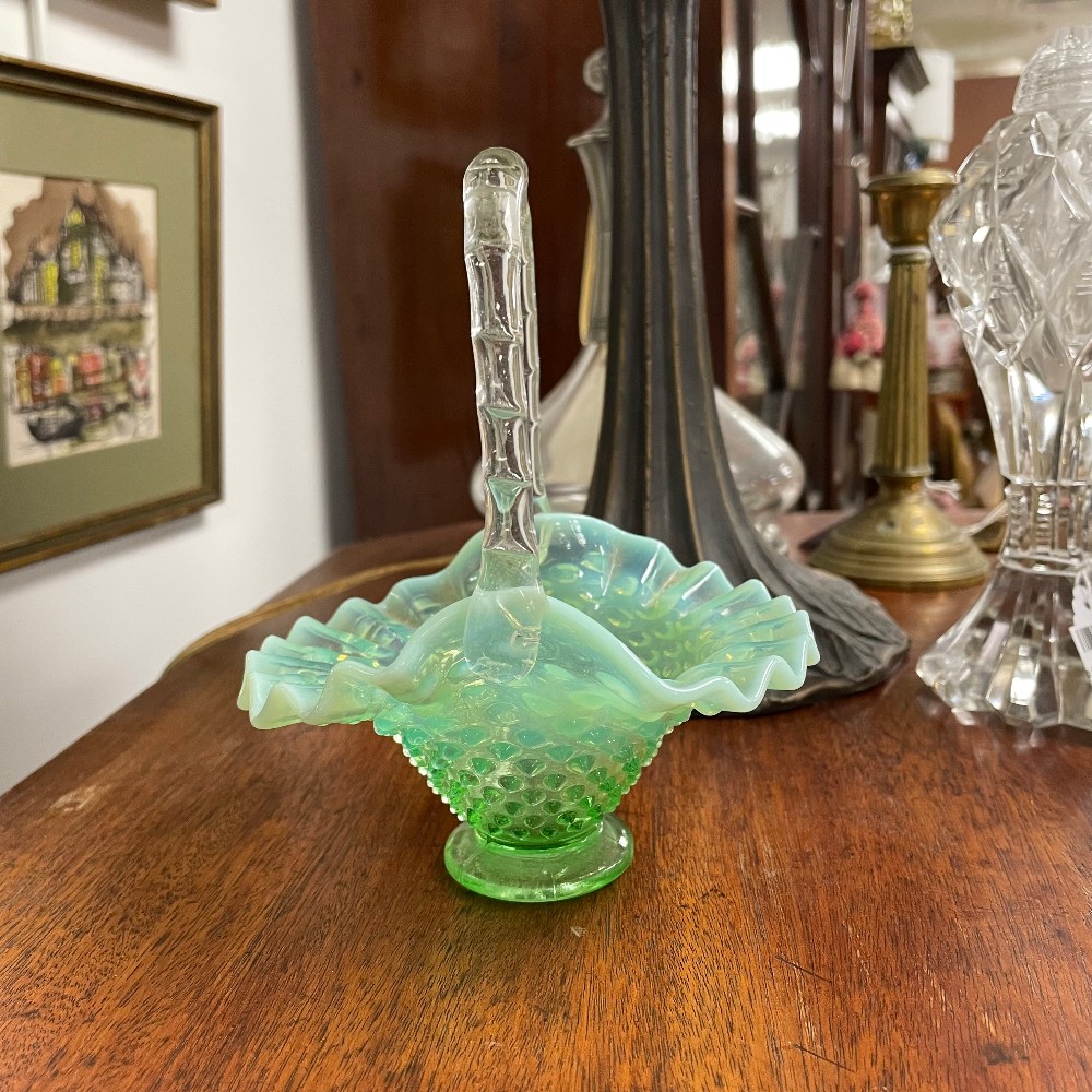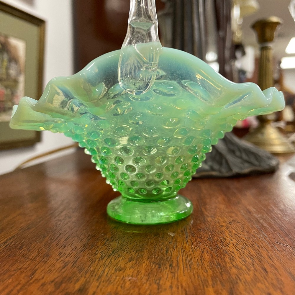 7027-57 Green Opalescent Hobnail Glass Basket