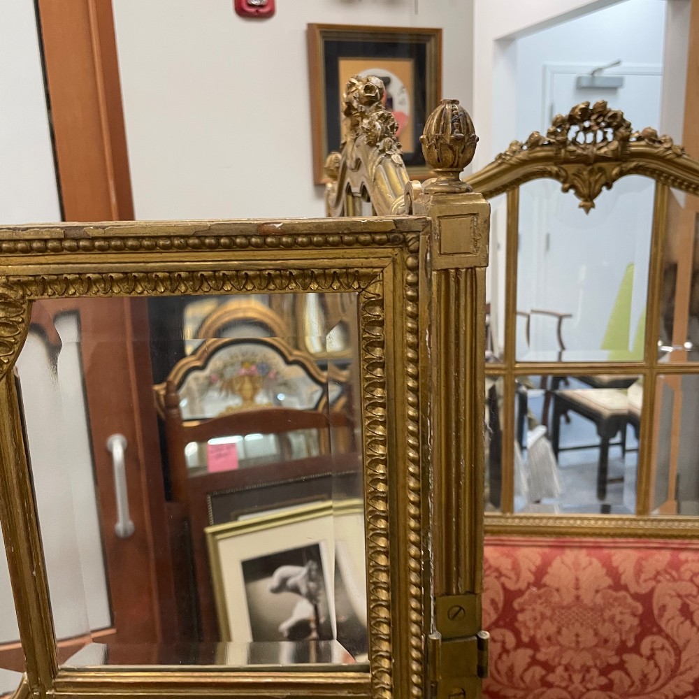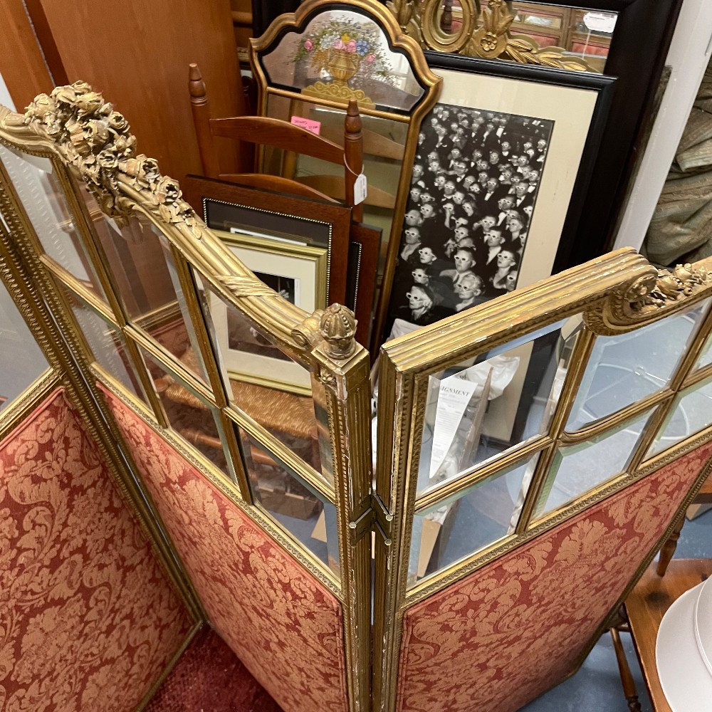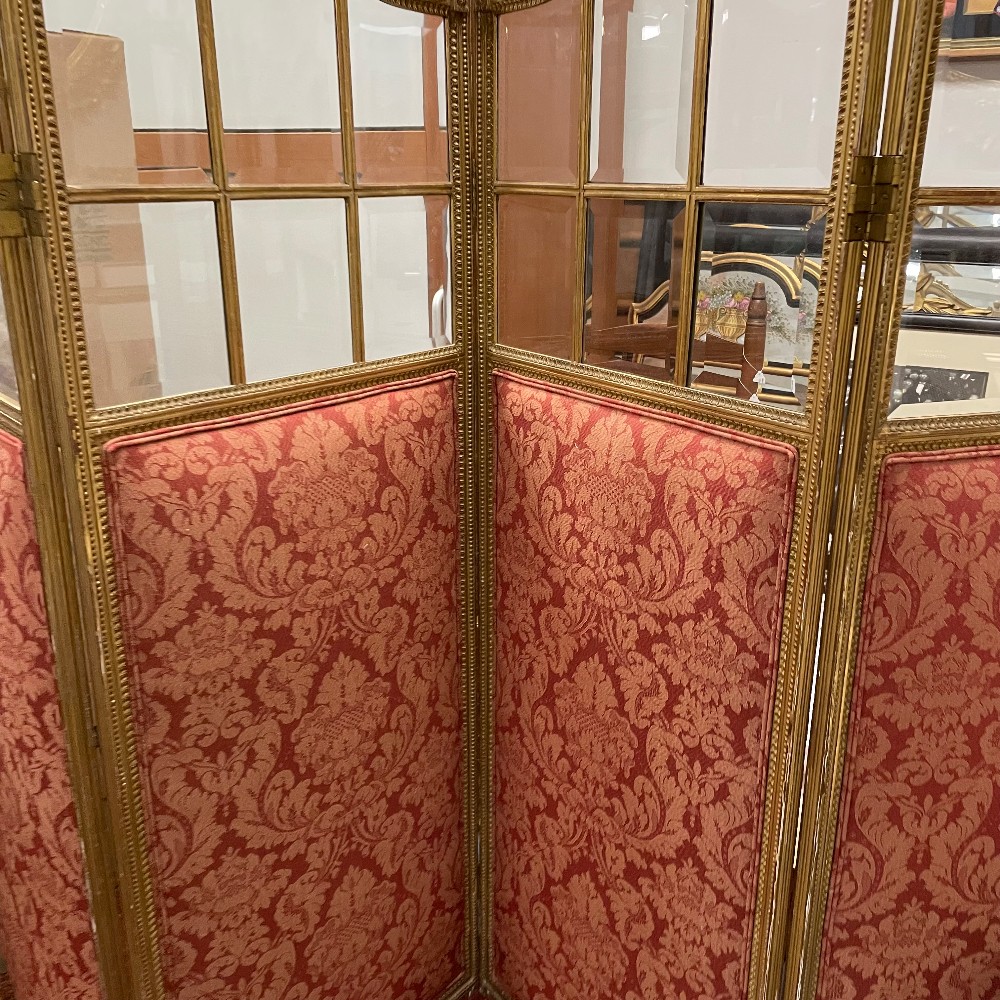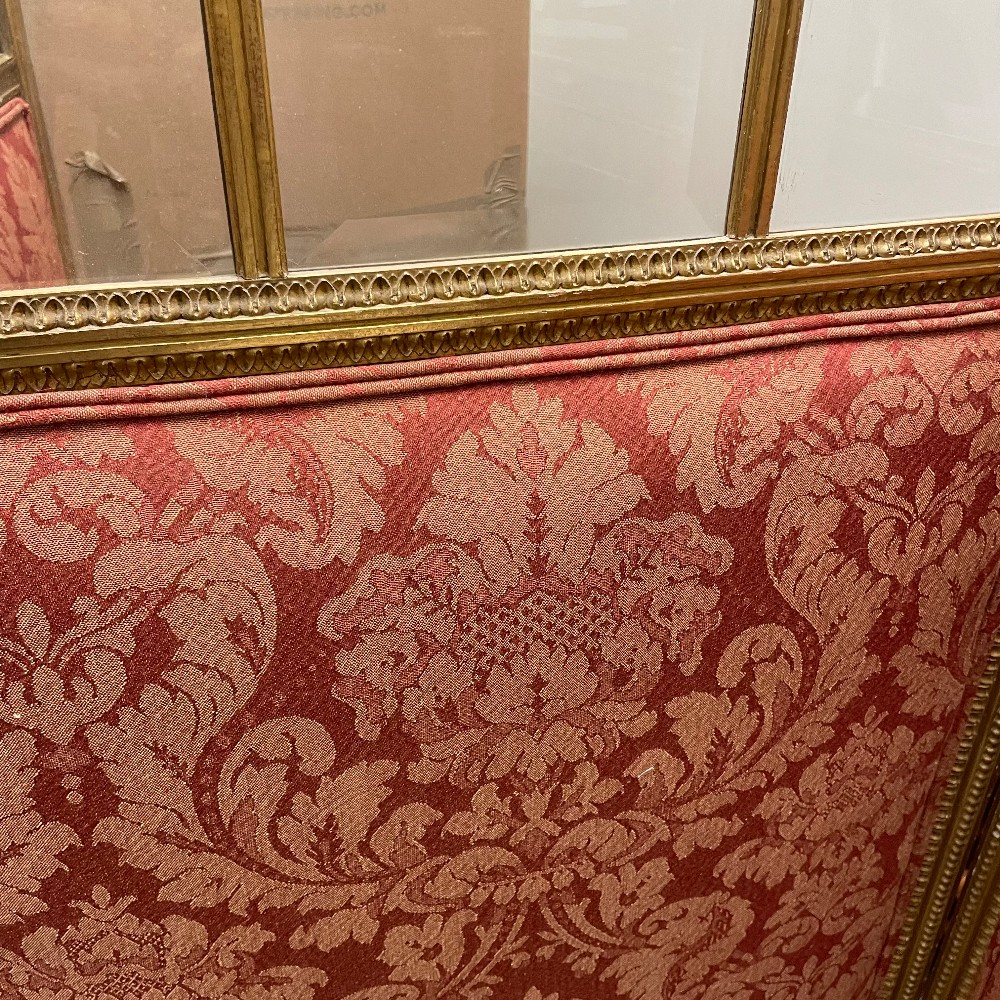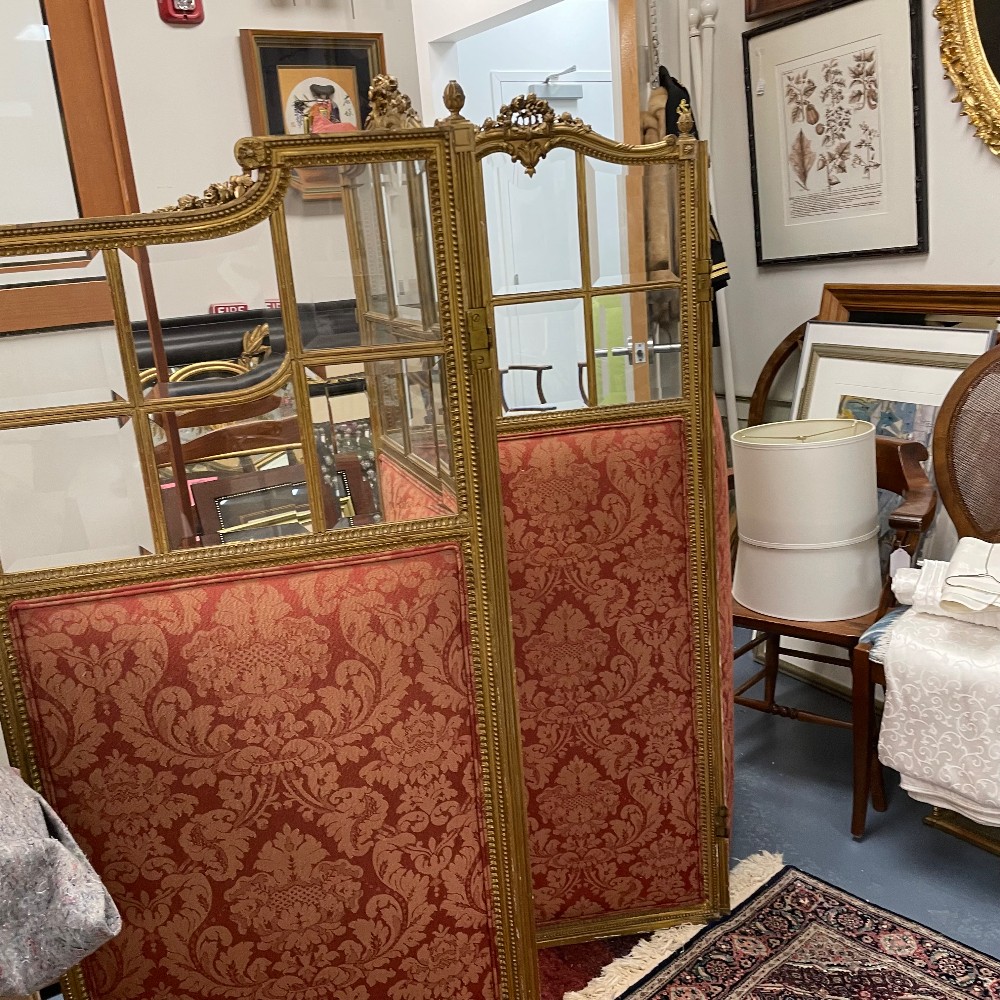 Glass, Carved Wood & Silk, 63" tall, each panel is 22" wide (88" total) and 1.25" thick brass hinges