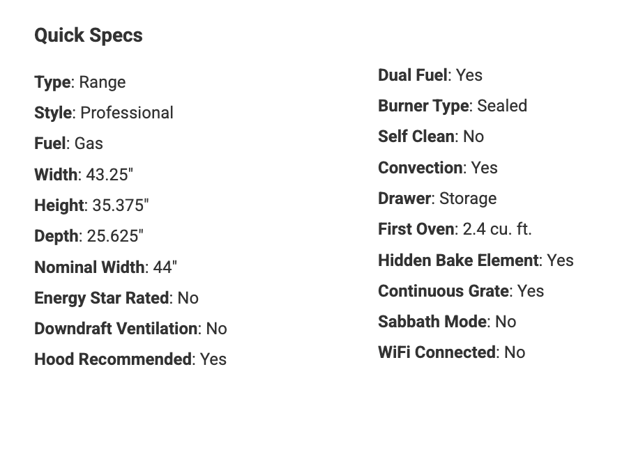 gas, 43.25" Wide, professional, vintage look, modern design, 7 cooking modes, 6 burners