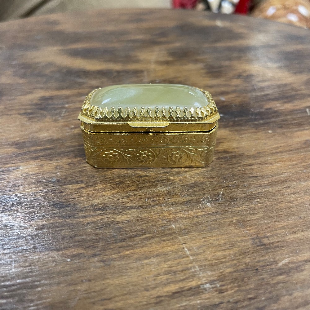 with jade like stone lid, h. 1", w, 2 ", d. 1"