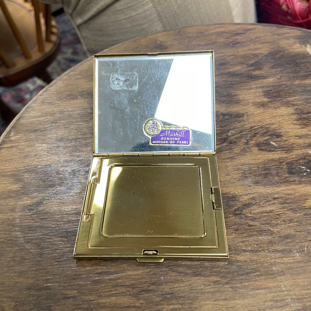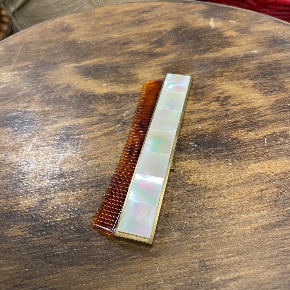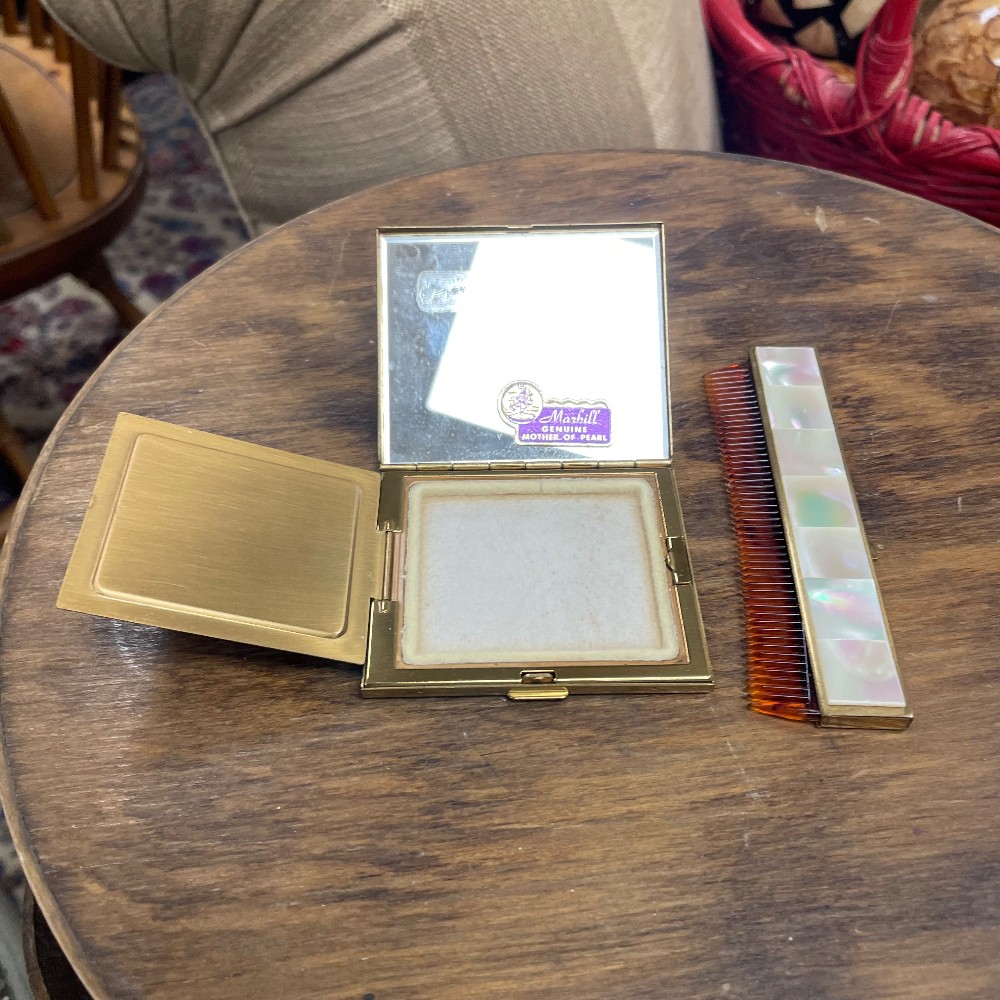 powder compact w. 3", d. 2 1/2", comb l, 4 1/4", w. 1"