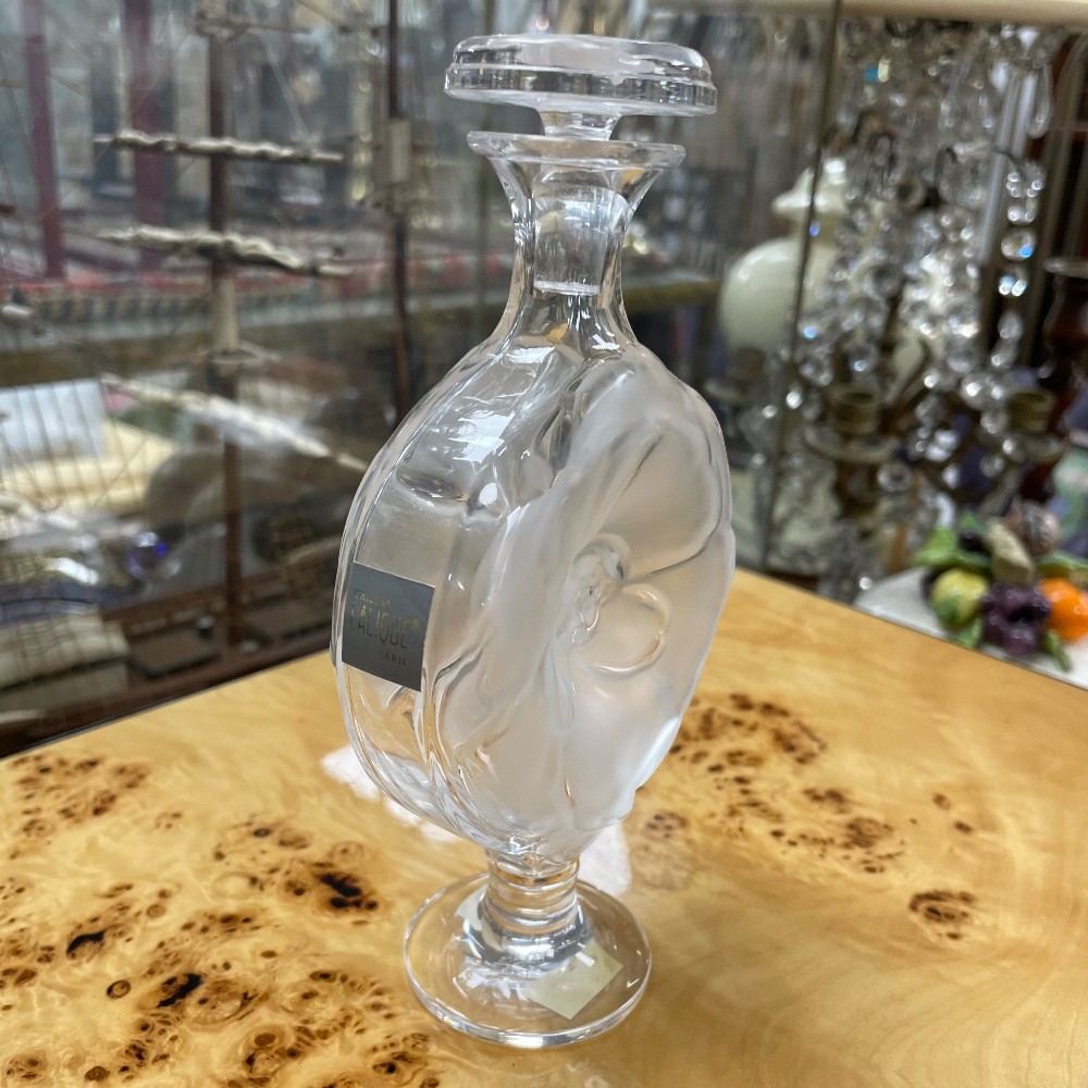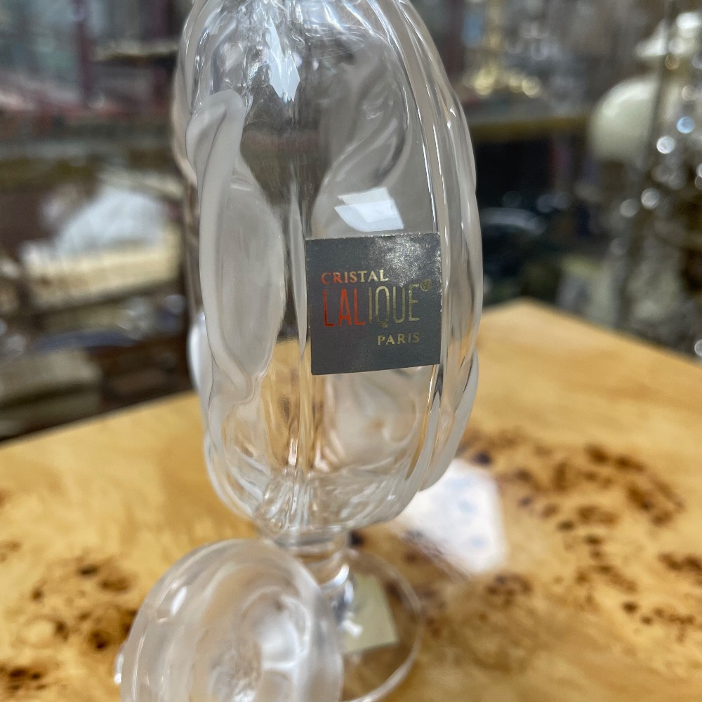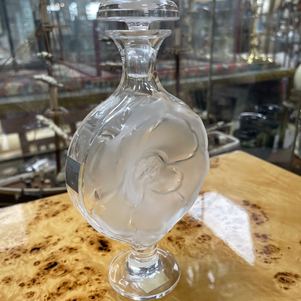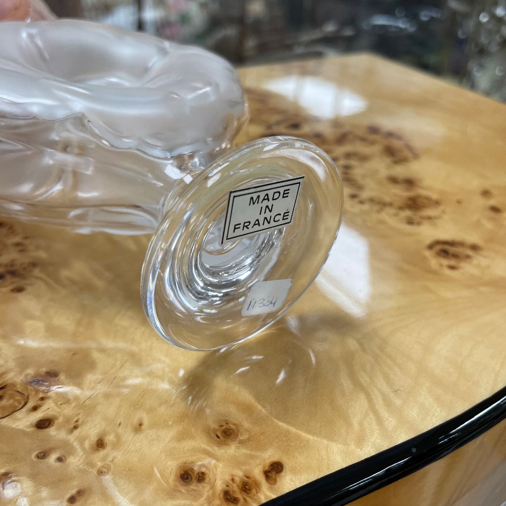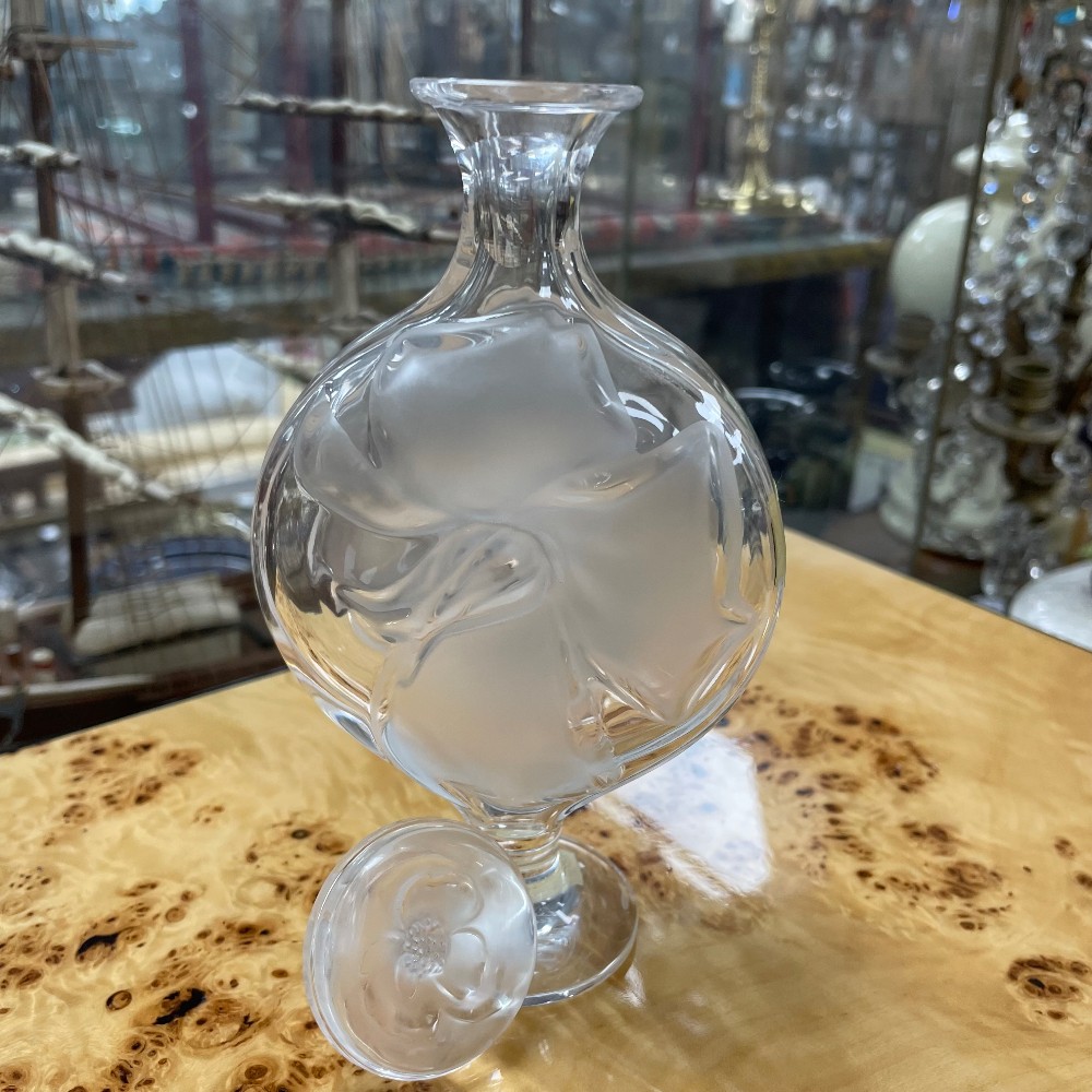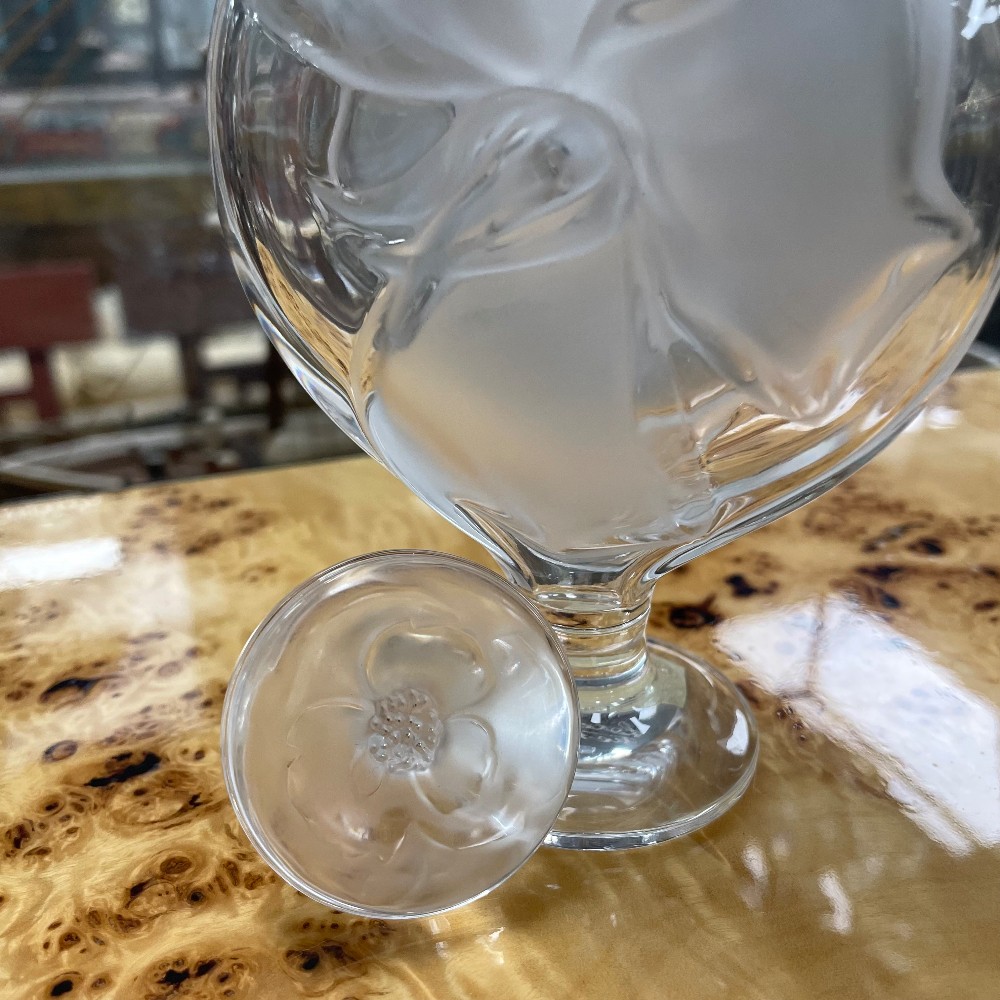 Measuring 6 3/4"T x 3 1/2"W x 1 3/4"D. Frosted glass floral design