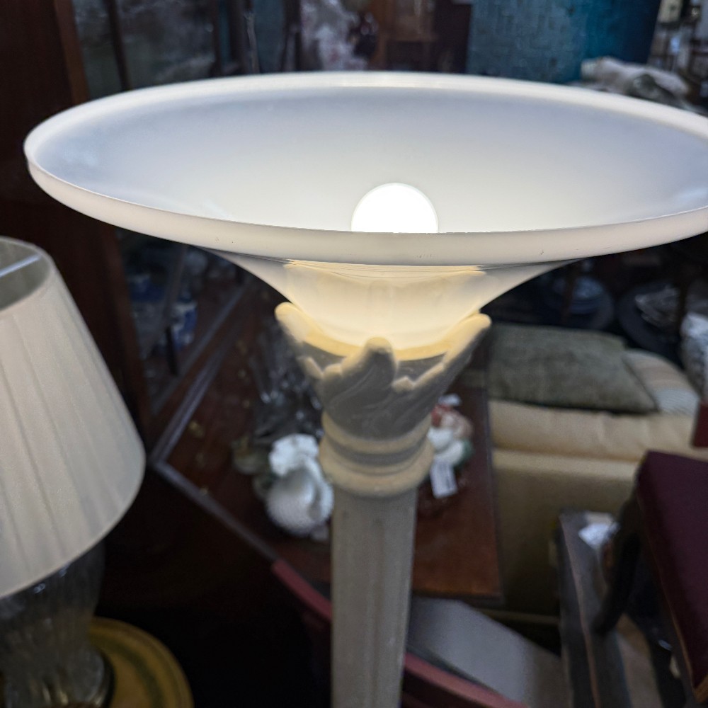 Plastic shade, composite body 67.5" tall, 12"d base and 20" d shade