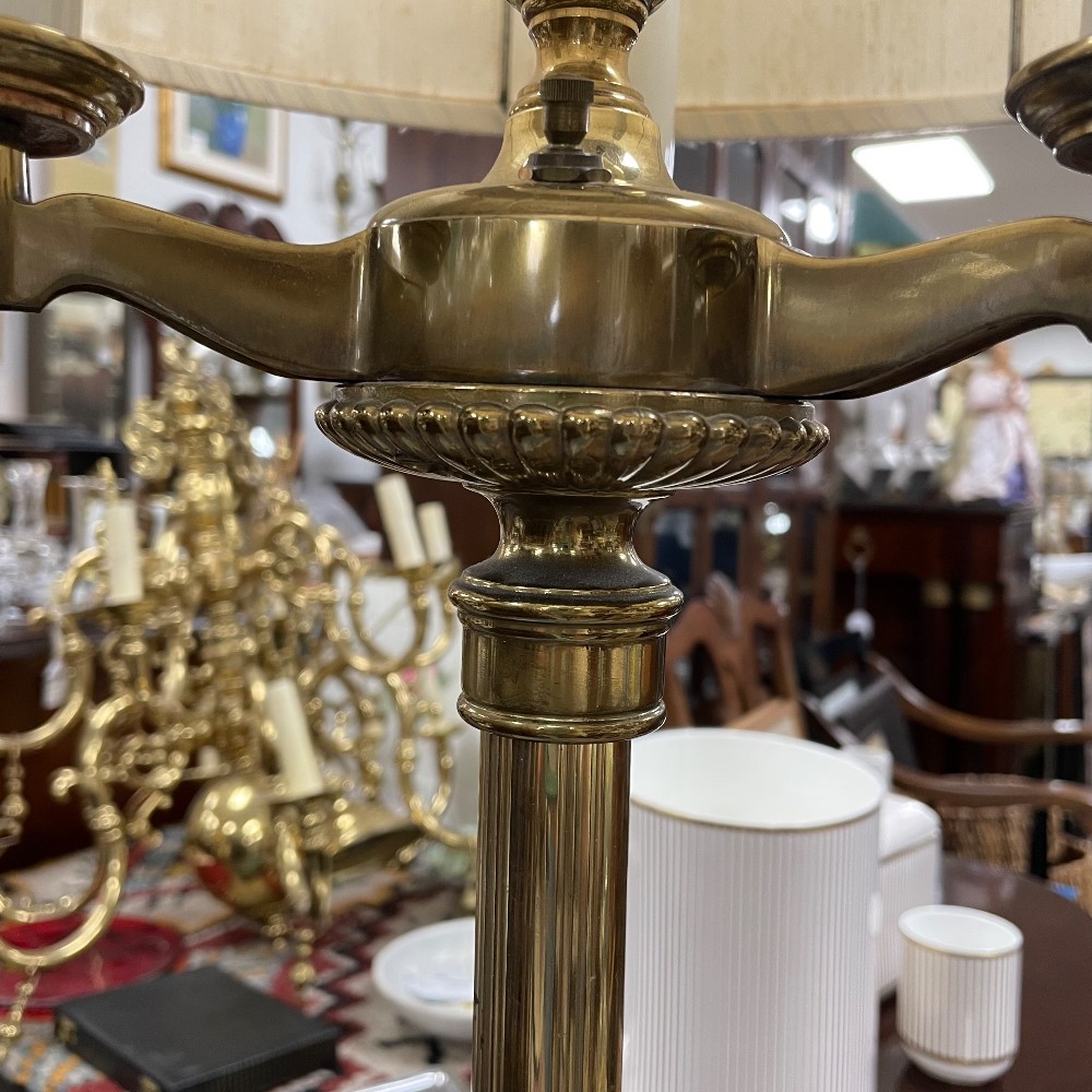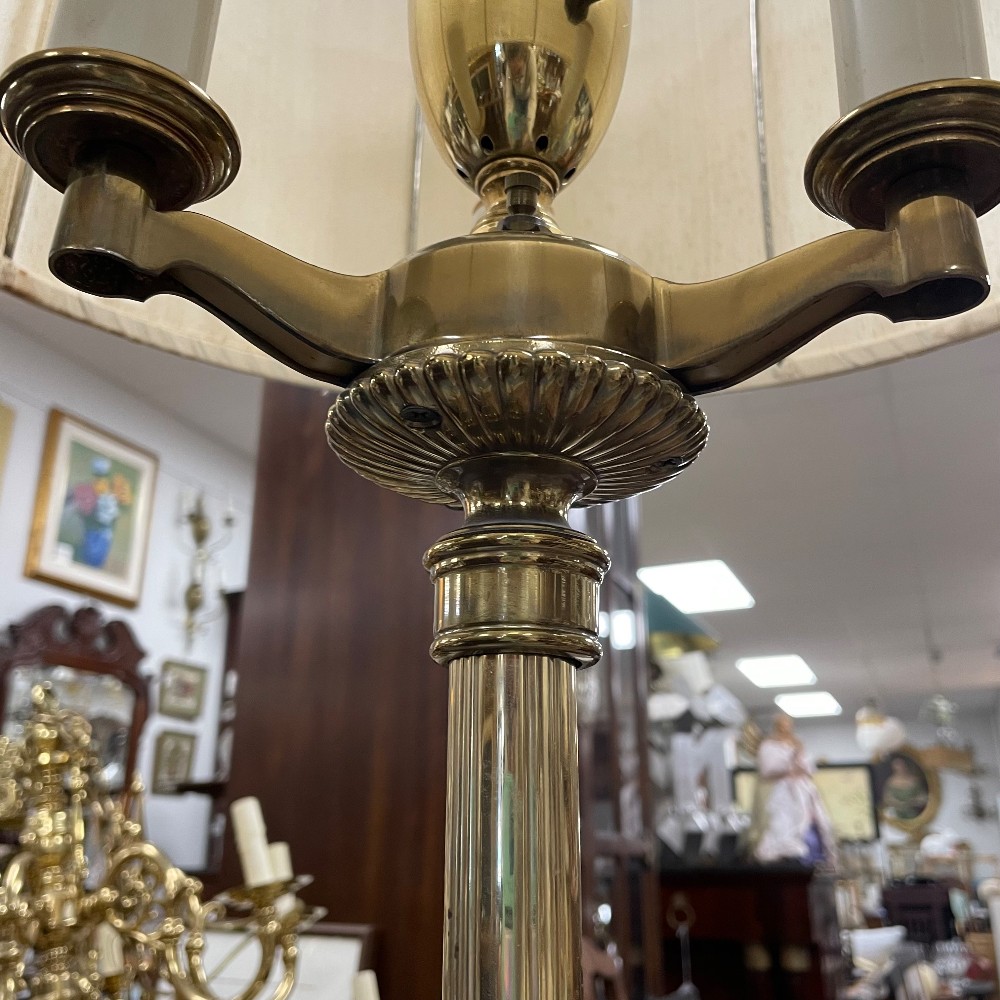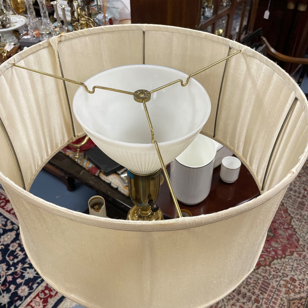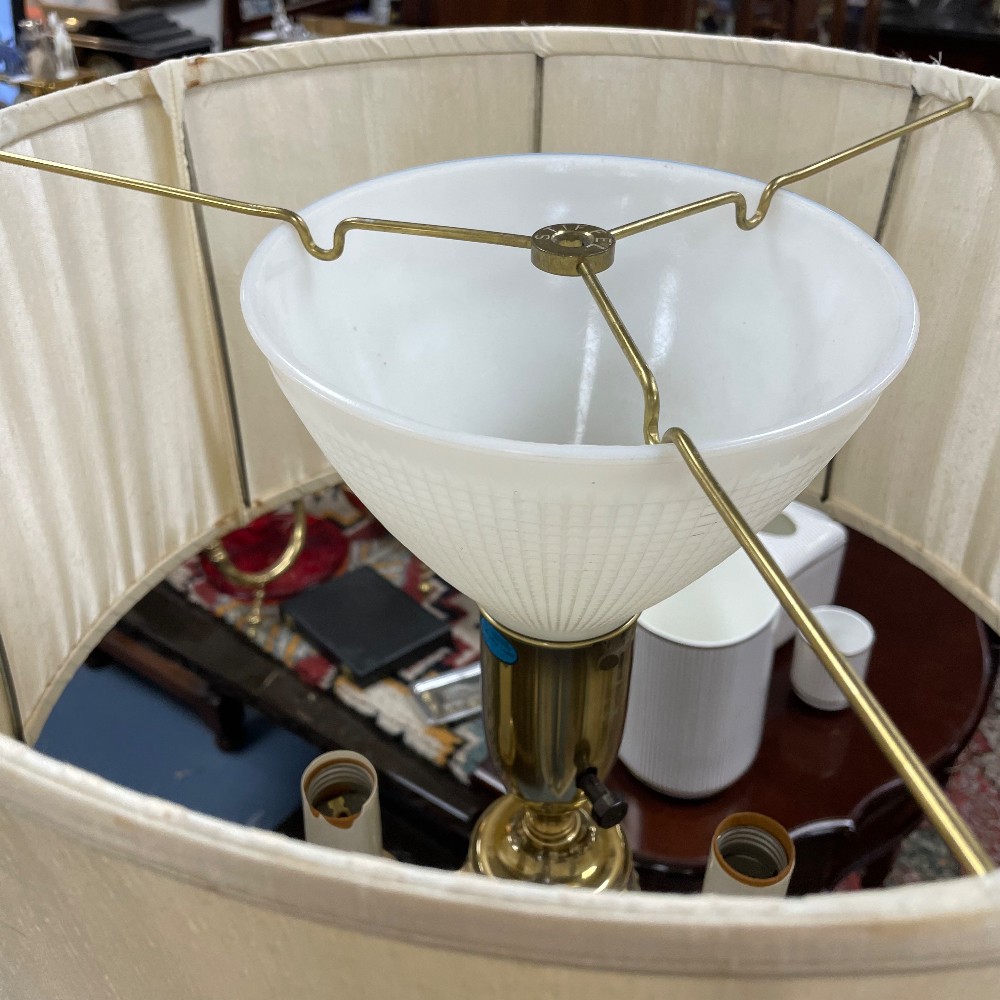Measuring 60"T x 17 1/2" (shade) x 11"D (lamp base). Condition as pictured