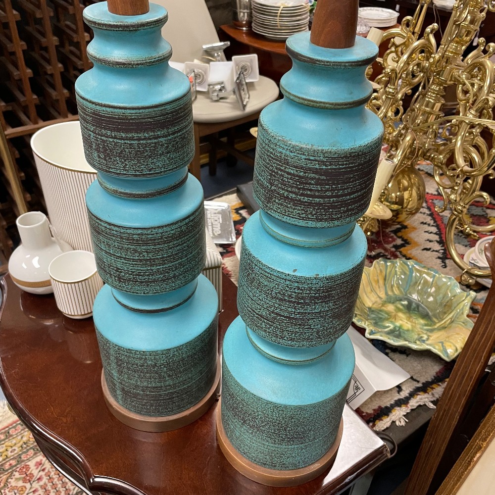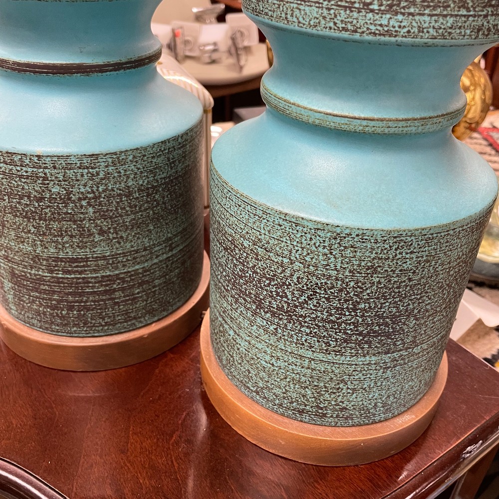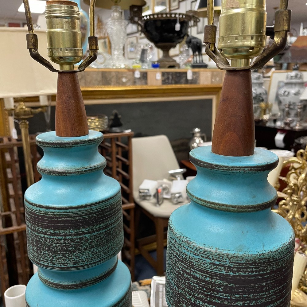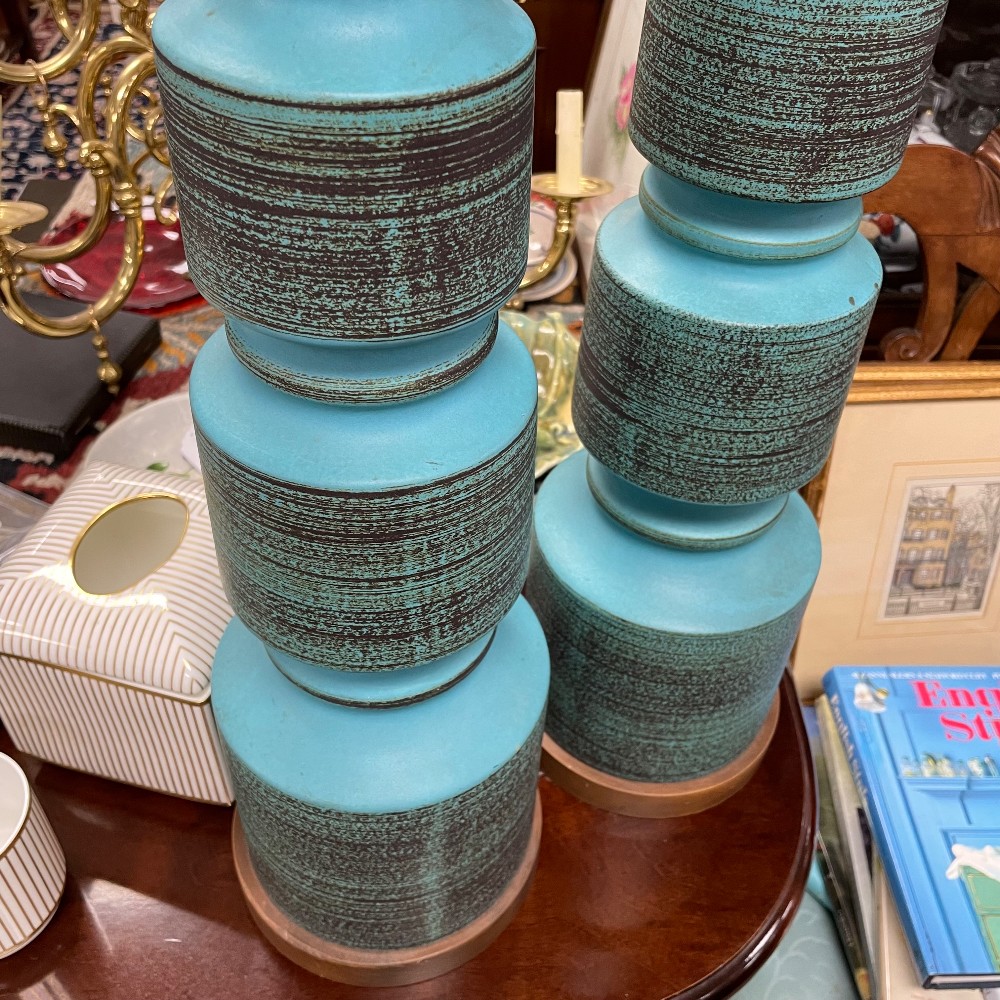 Aqua& brown color tones, wood base. Measuring 36 1/2"T x 7"W. Condition as pictured