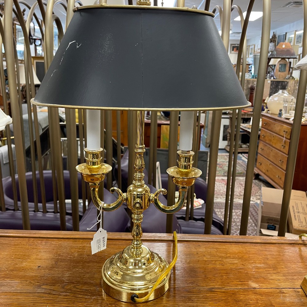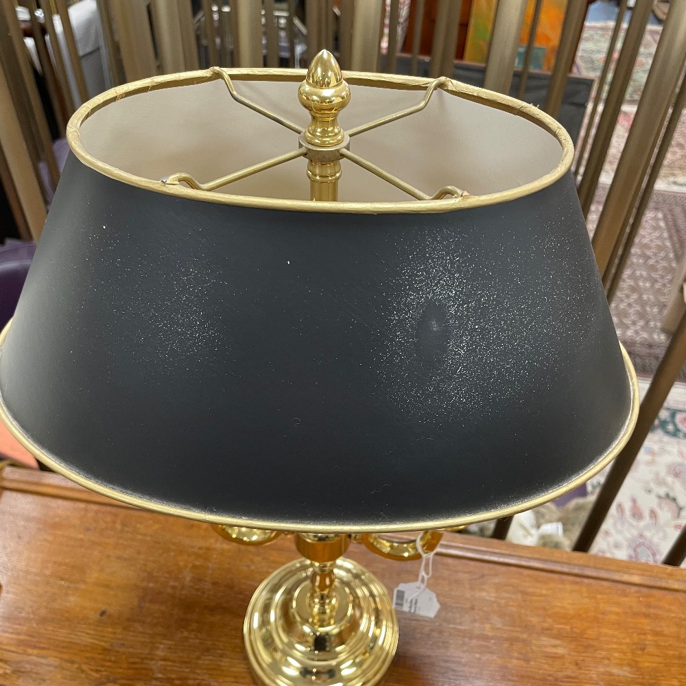 7775-8 Two-Arm Bouillotte Style Table Lamp w/ Black Shade