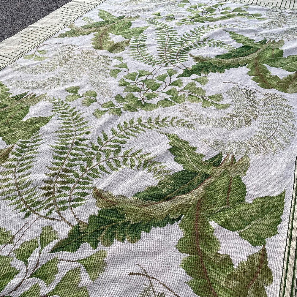 Measuring approx. 106 1/2" x 72 1/2". Beautiful rug w/ slight/small stains. Condition as pictured.