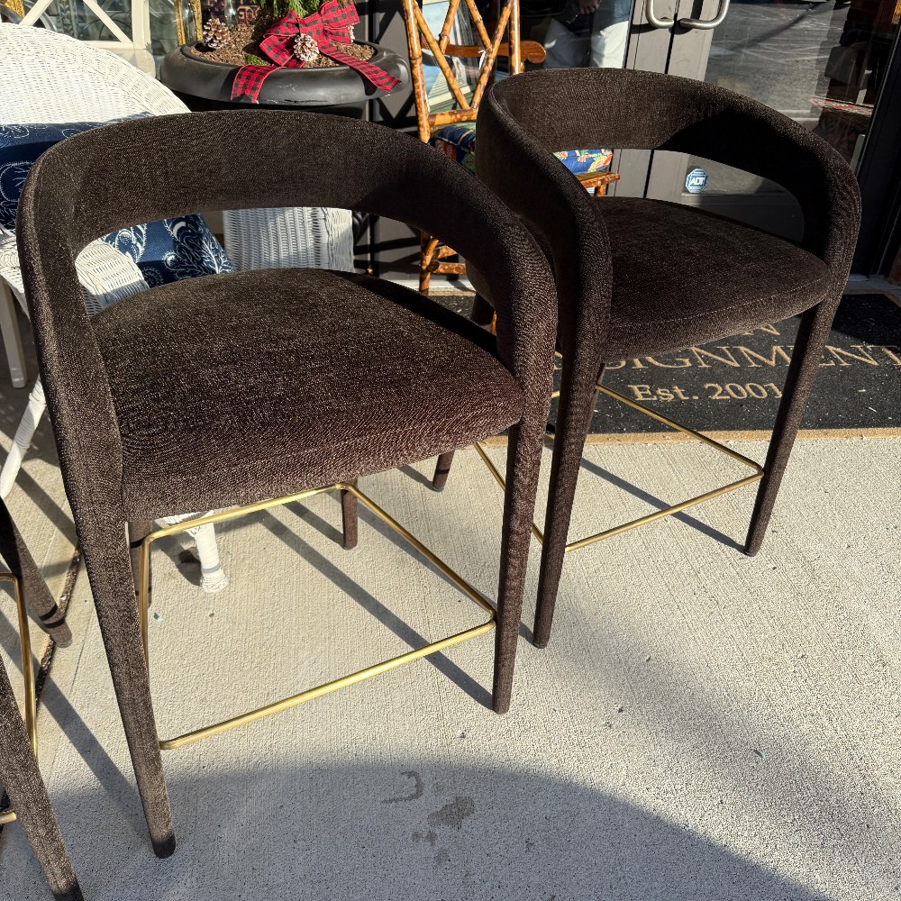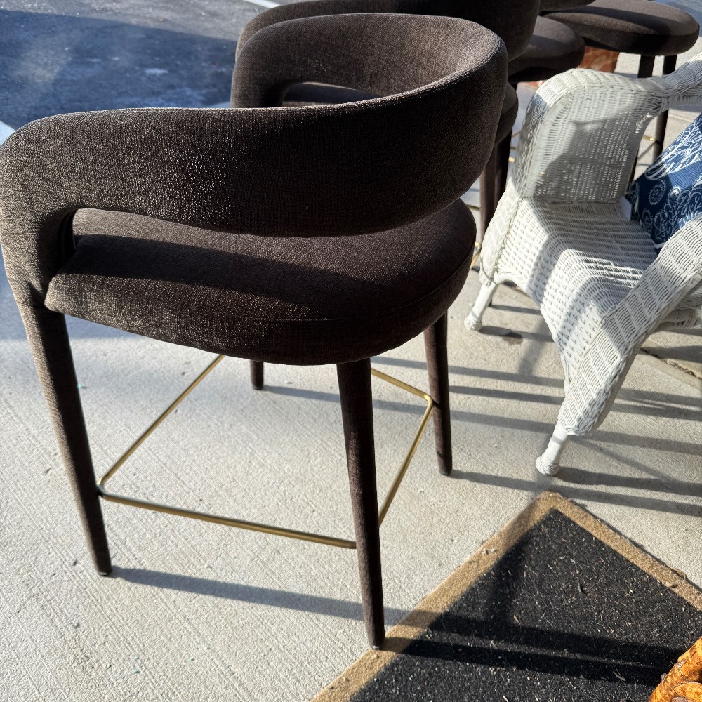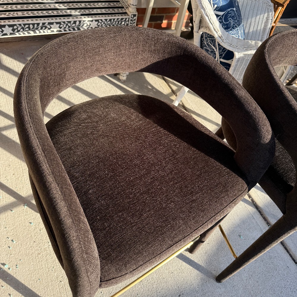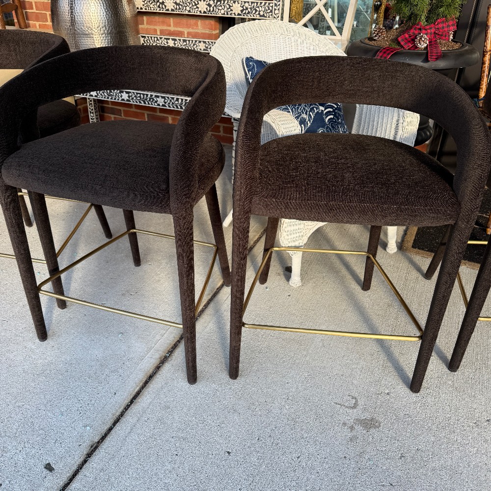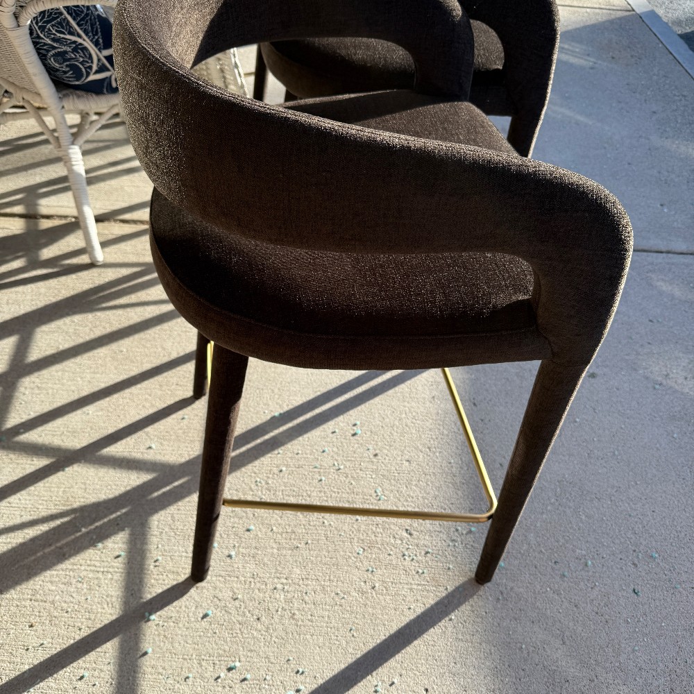 Lisette Brown Performance Fabric Counter Stool, Overall Dimensions Width: 22" Depth: 20.75" Height: 34" Seat Dimensions Width: 18.5" Depth: 20" Arm Height: 31"