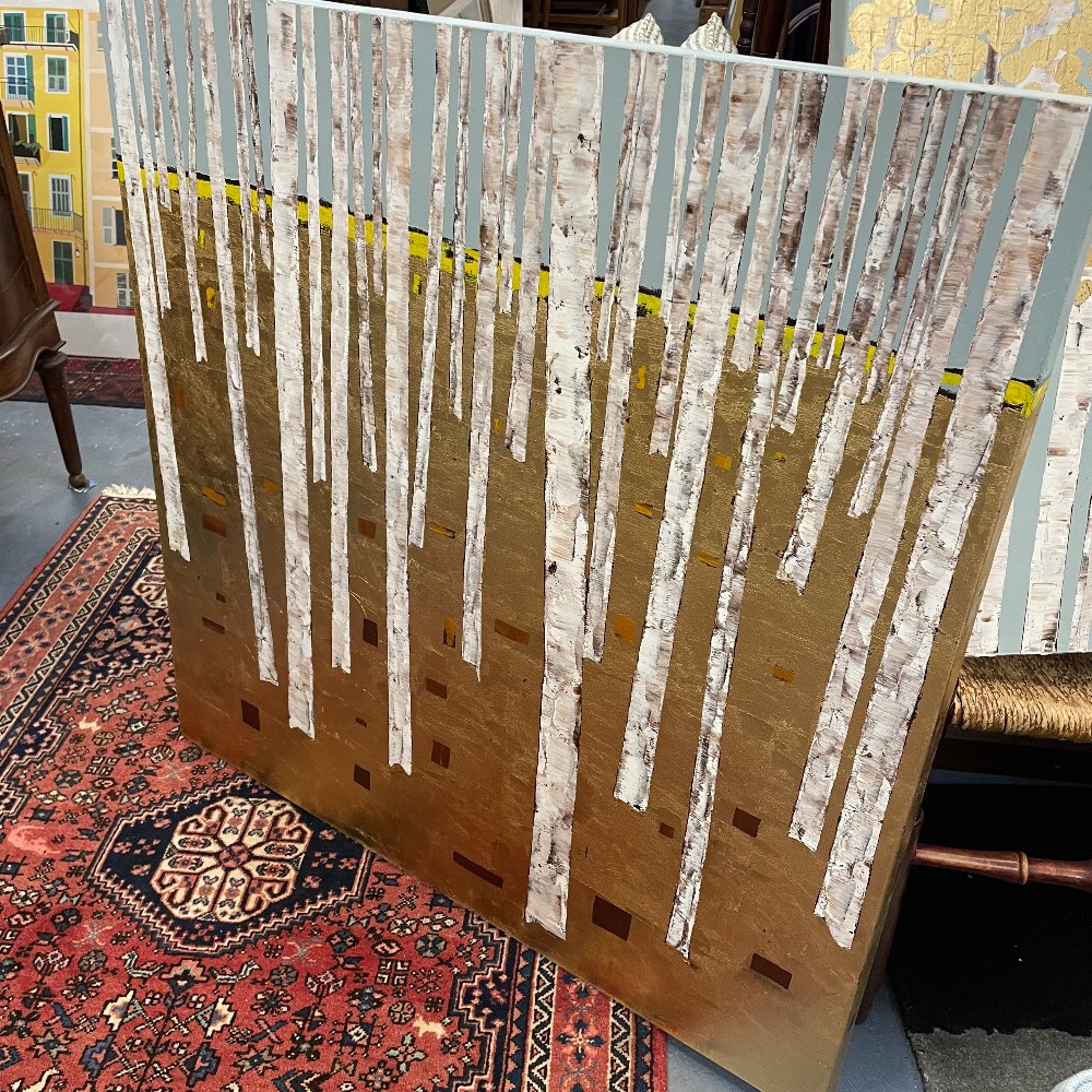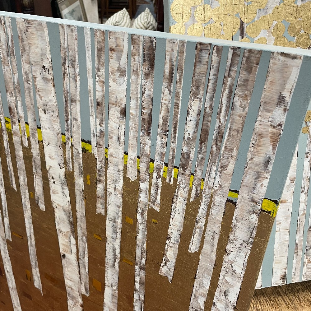 Home / Paintings / 6128-72 Kate Salenfriend Original Oil on Canvas w/ Gold Composition Leaf Painting