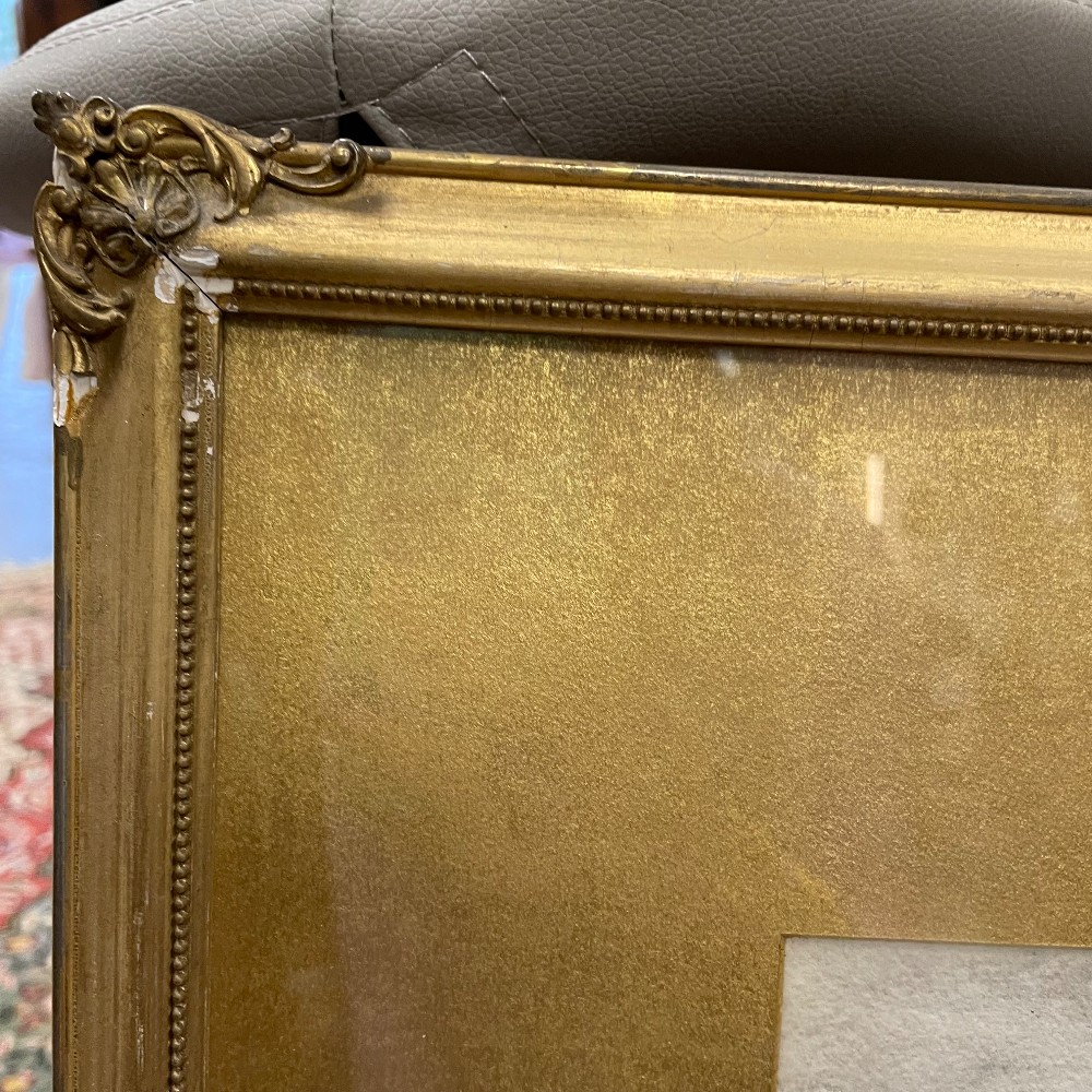 Antique. Gilt matting & frame. Measuring 18 3/4"W x 22 3/4"T. Condition as pictured.