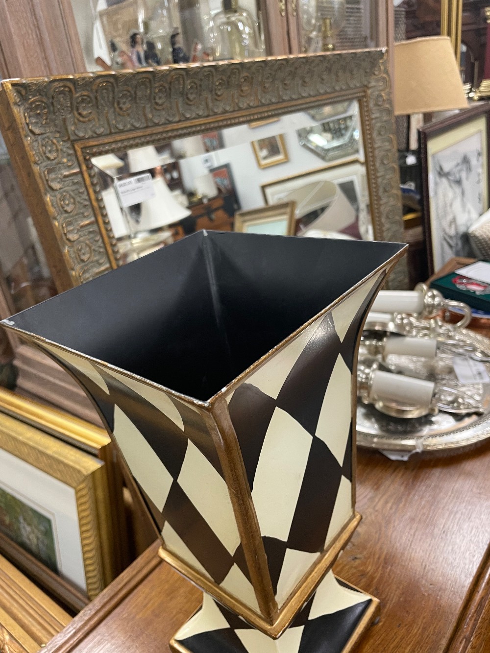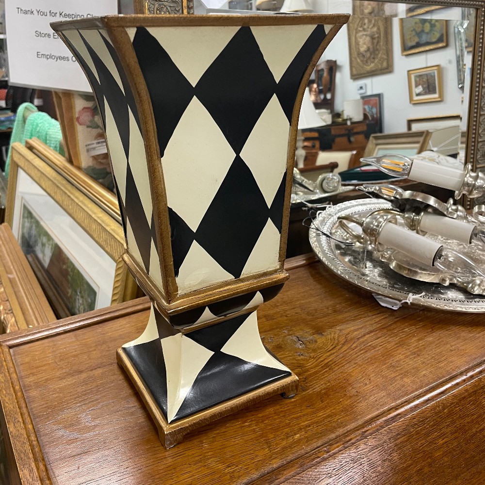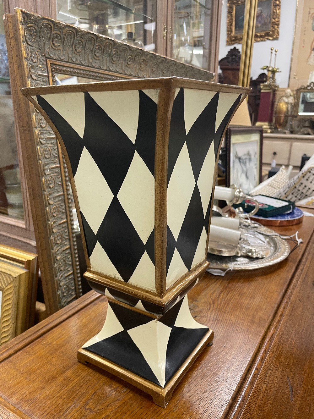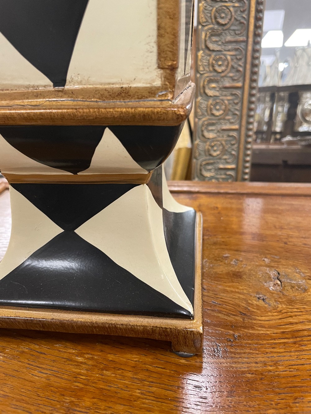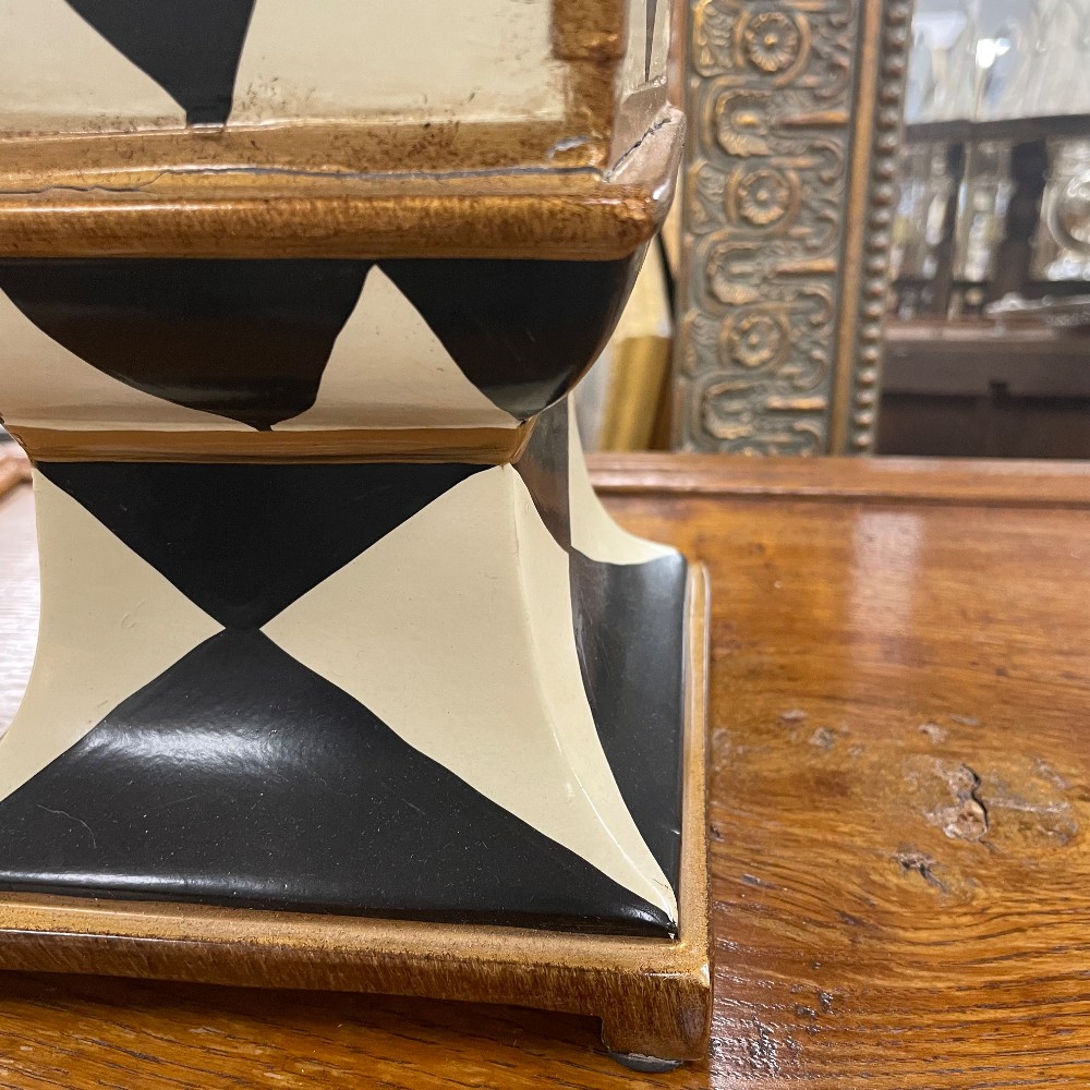 harlequin pattern, h. 13 3/4", w. 7 1/2", d. 7 1/2"