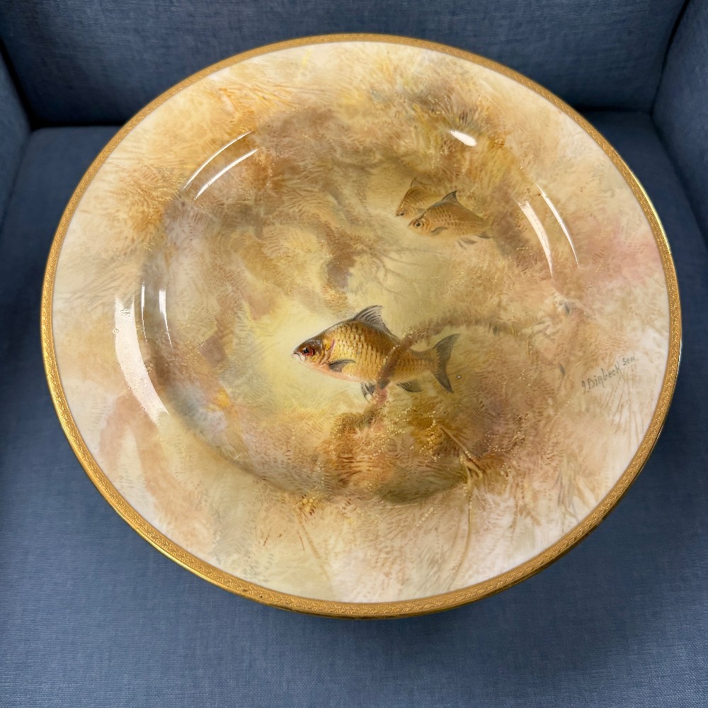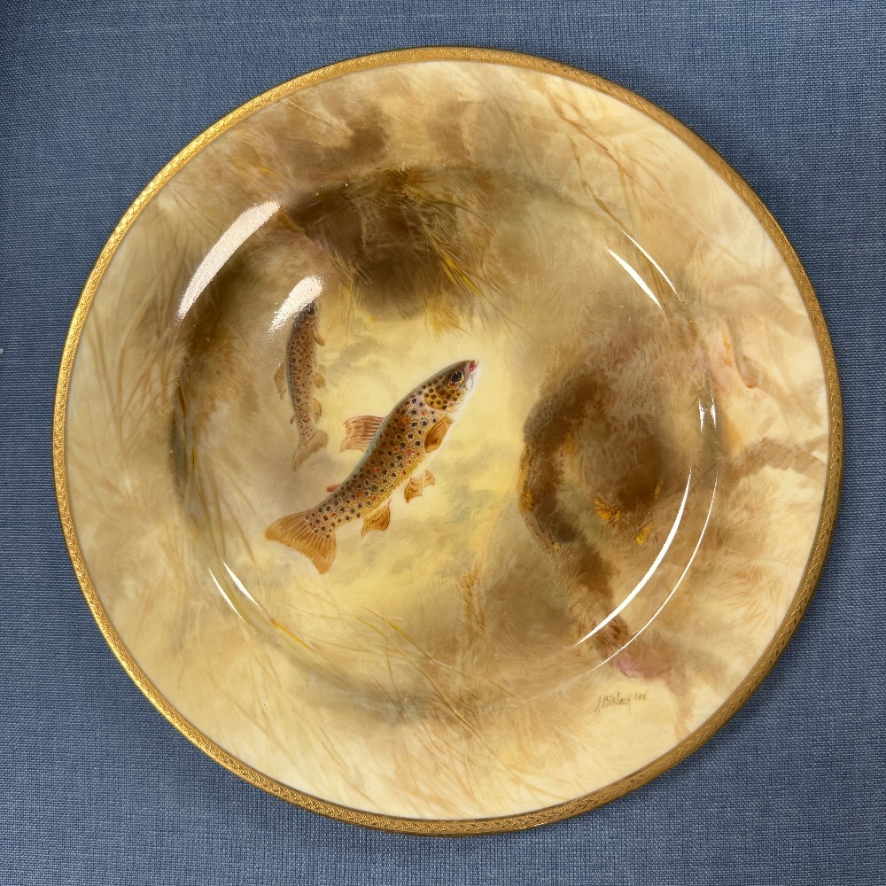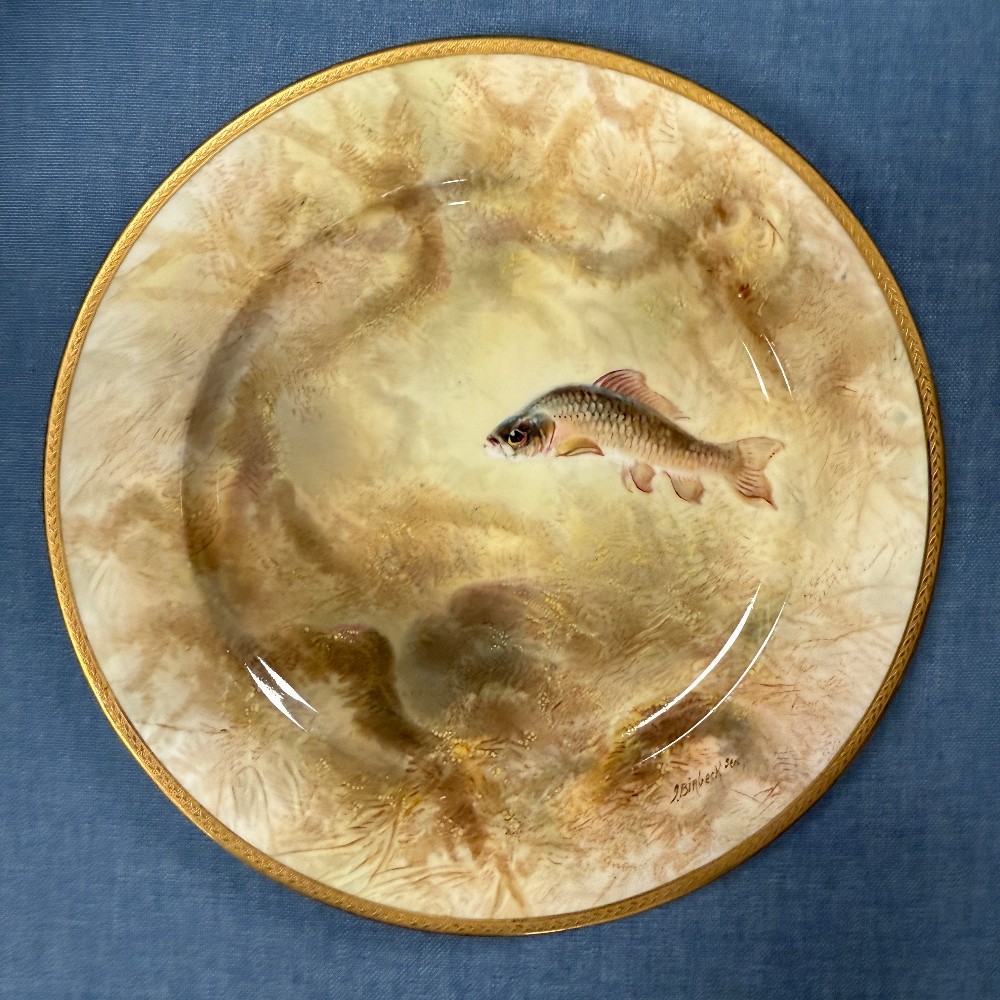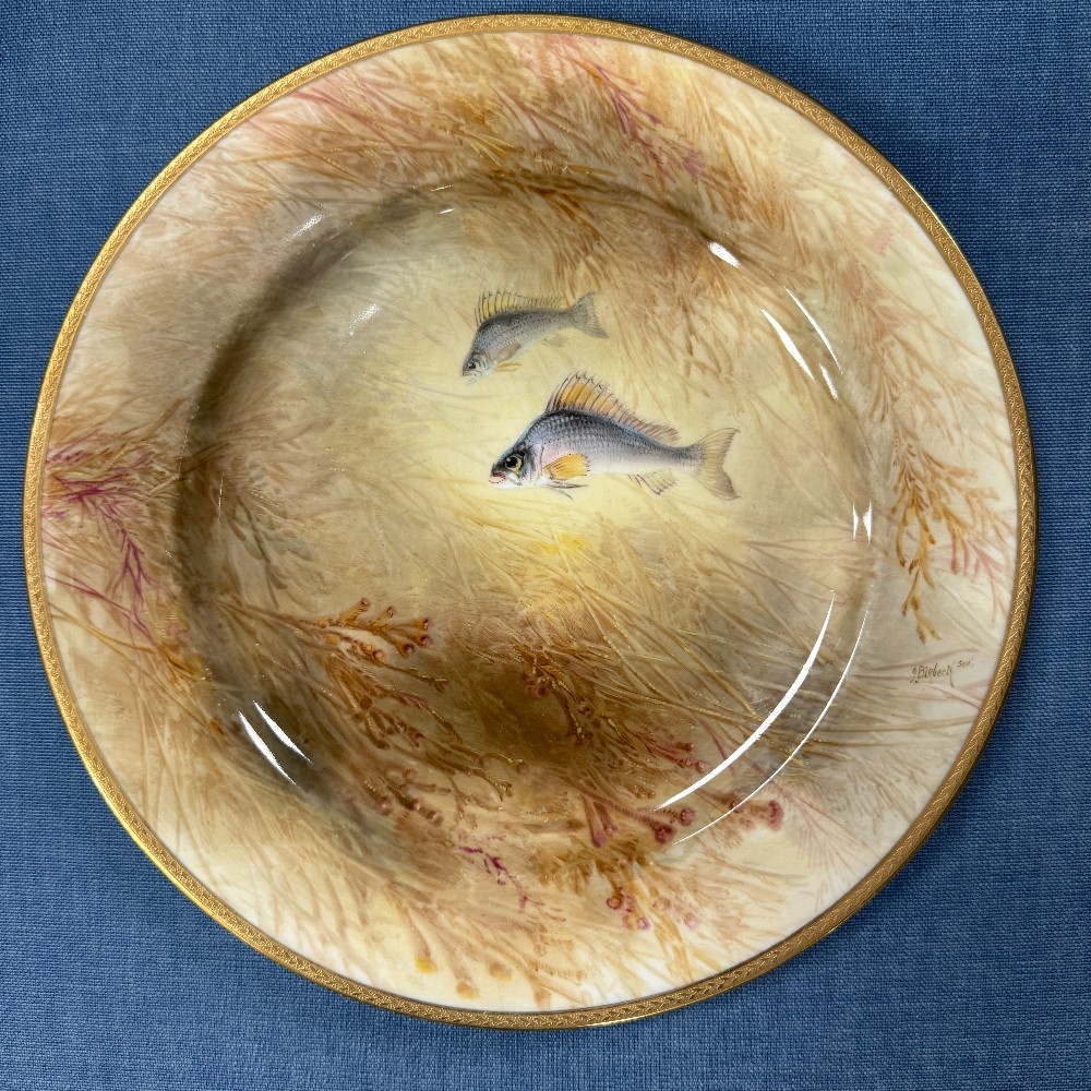 hand painted, signed, incredible collection of 16. Each measuring 9.5" D with gold edging.