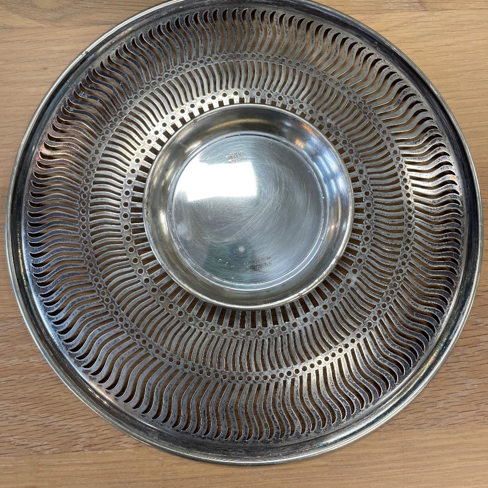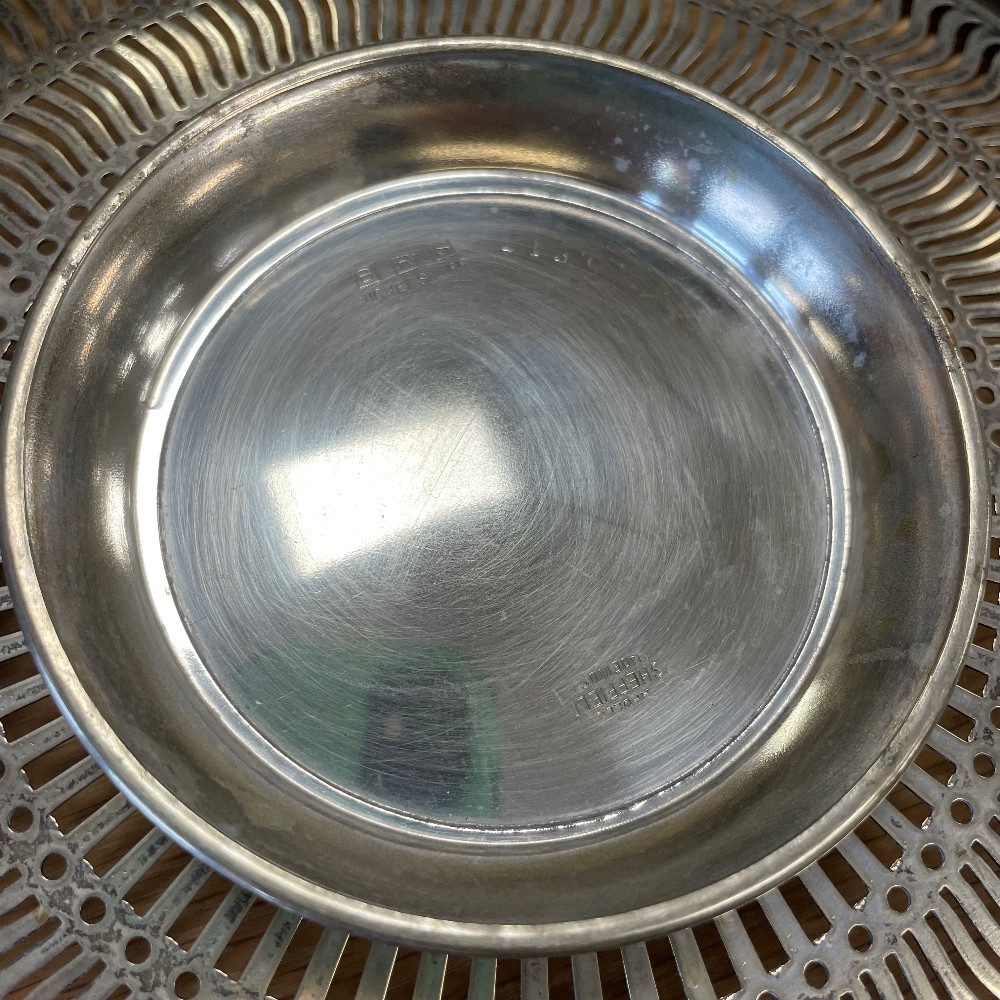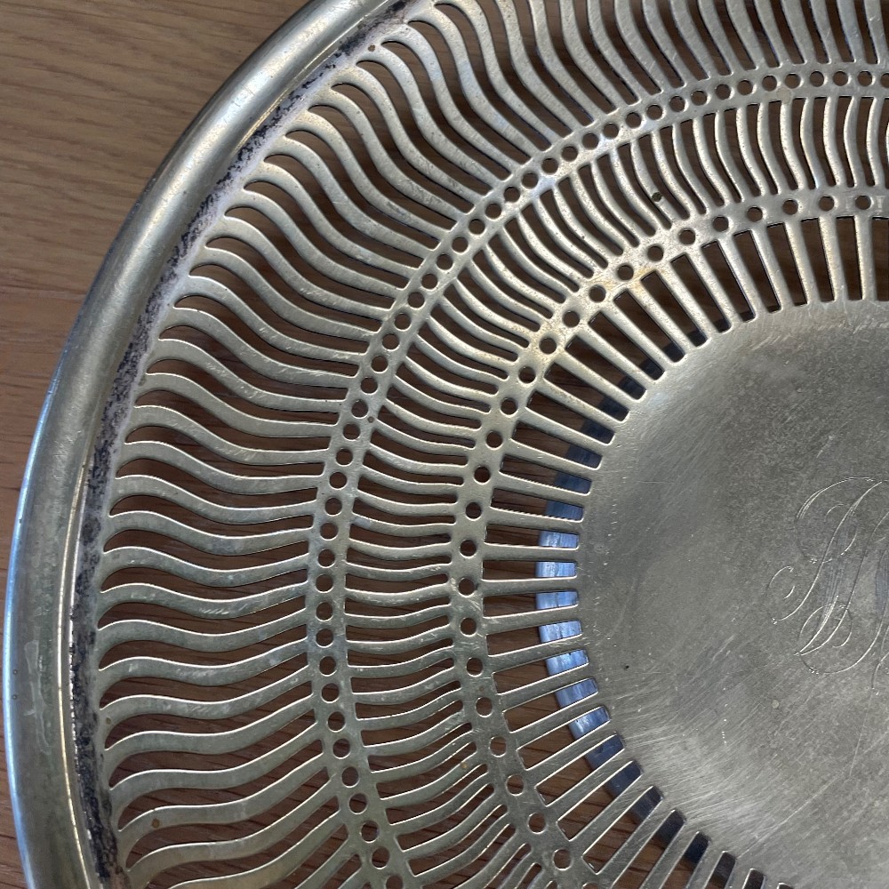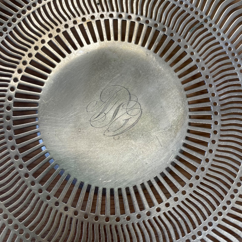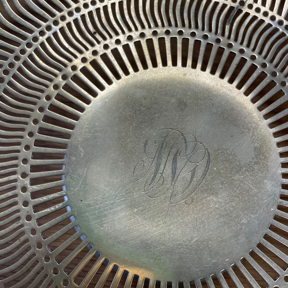 Footed plate, monogrammed. Measuring 9 1/2"D 1 1/4"T. Condition as pictured