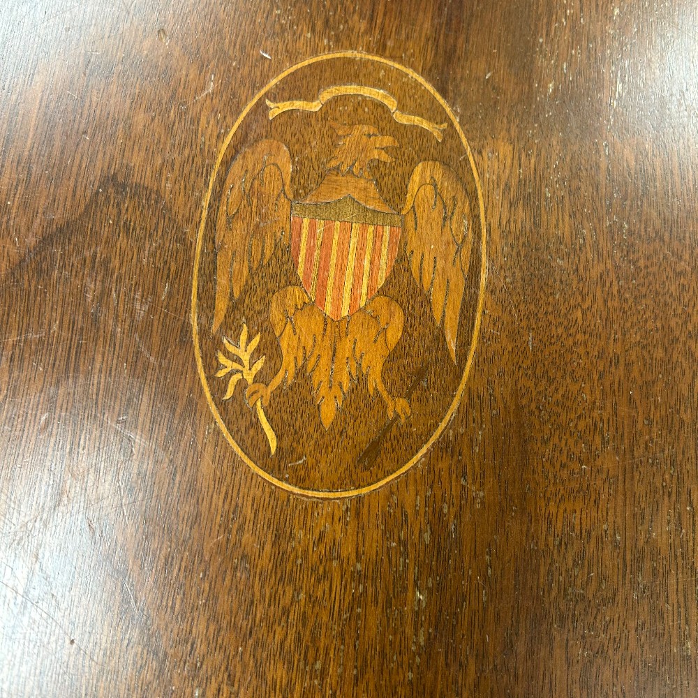with eagle shield flag inlay, h. 25 1/2", w. 26", d. 18"