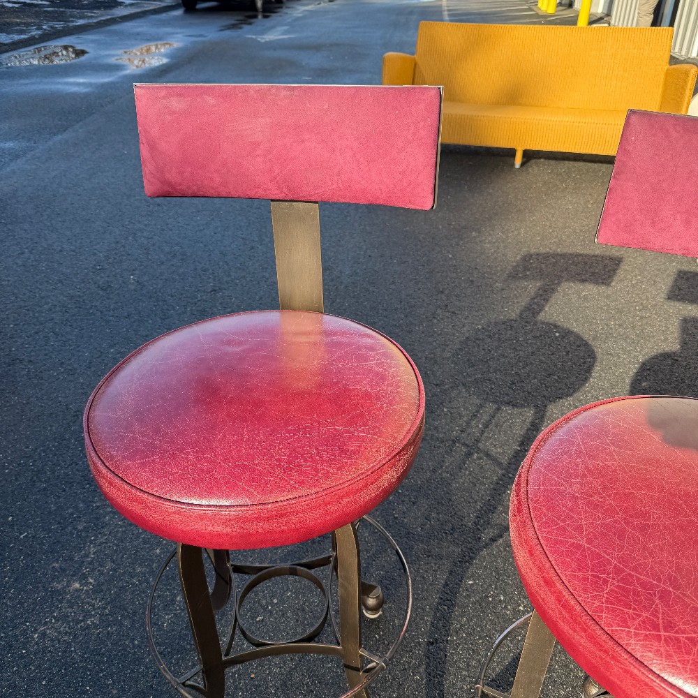 maroon, heavy metal leather and suede - 19" d, seat height: 30" Back Height 44"