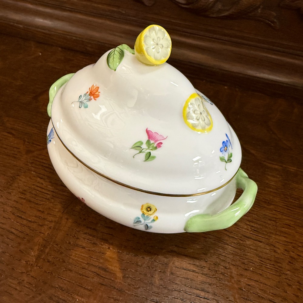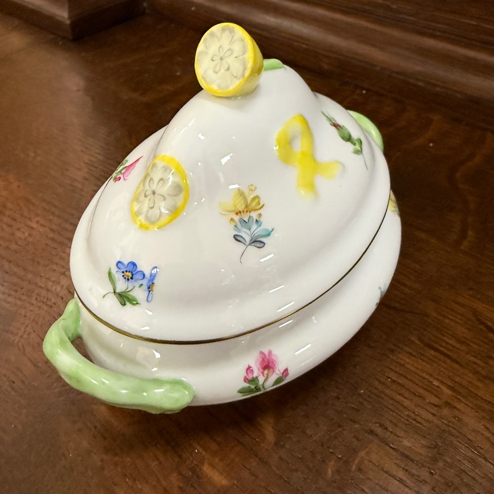 jar, pot with lid - Lemon handle, by Herend 5.5" x 3"