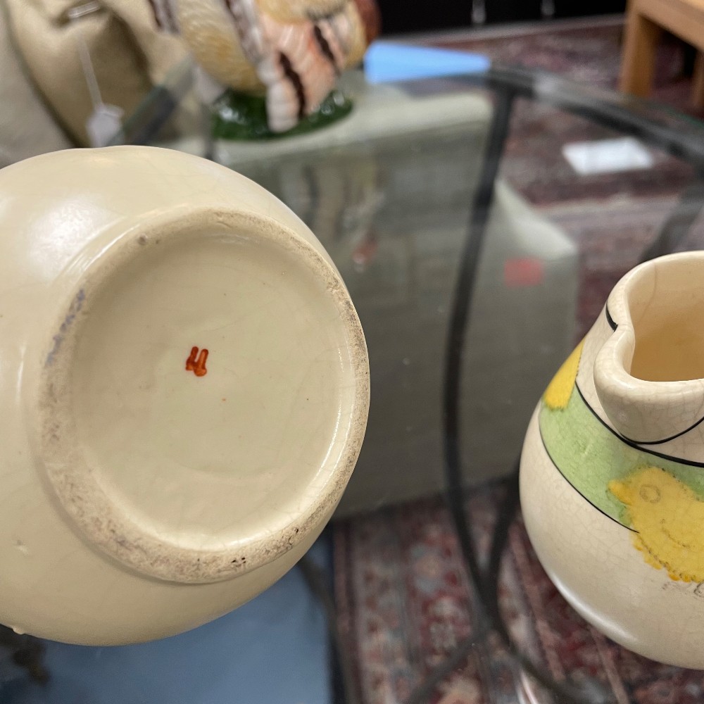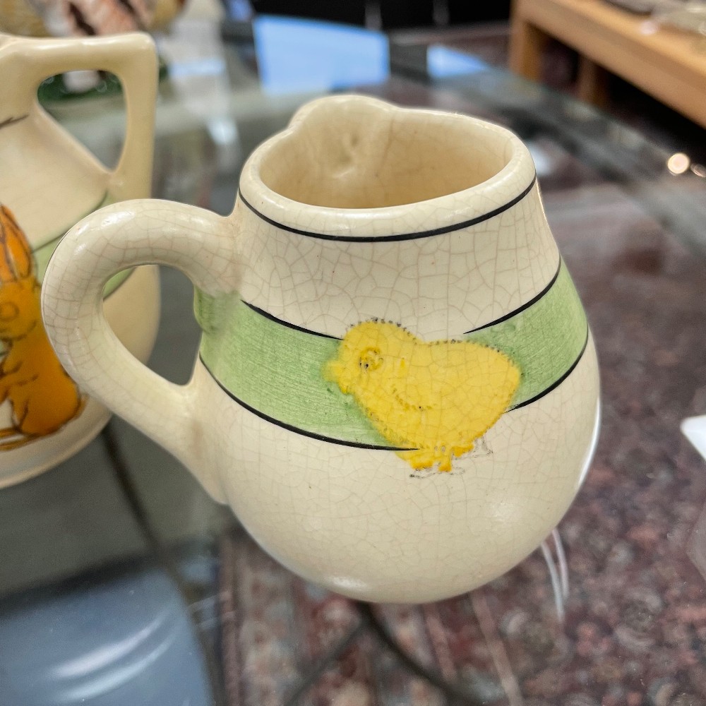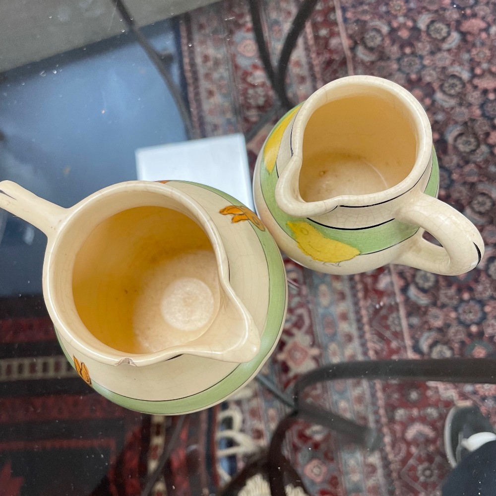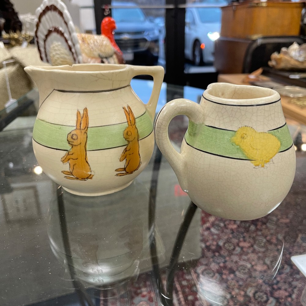 Measuring 4"W x 3 1/2"T & 3"T x 3 1/2"W. Chip on creaner top. Decor only. Condition as pictured