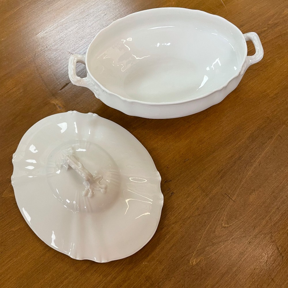 small tureen, white porcelain 9 x 6 x 4 with lid