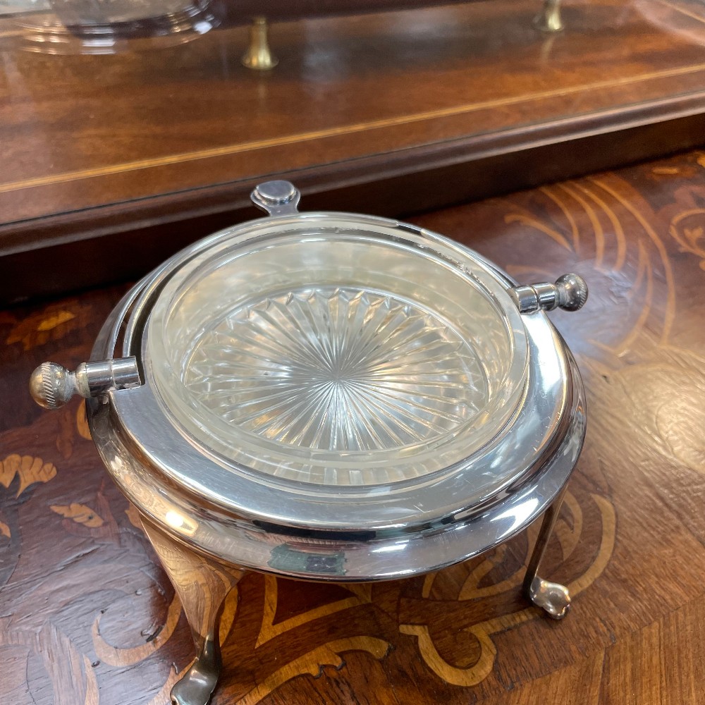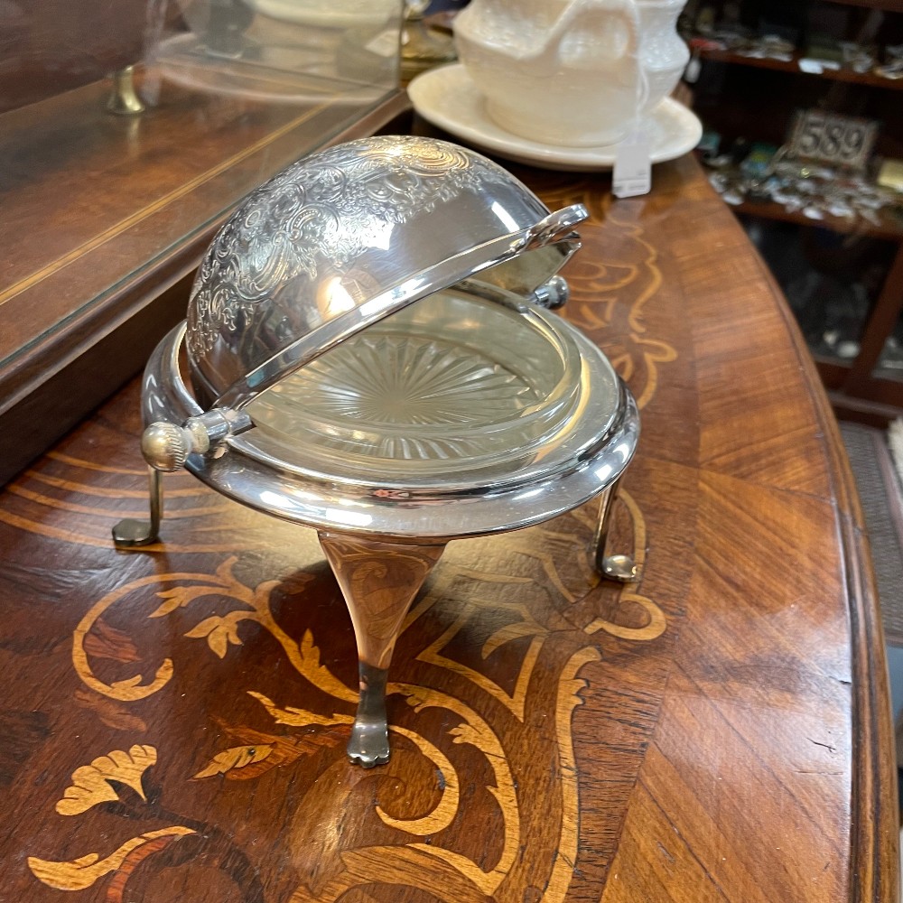 with roller top and glass insert, h. 5 1/2", diameter 6"