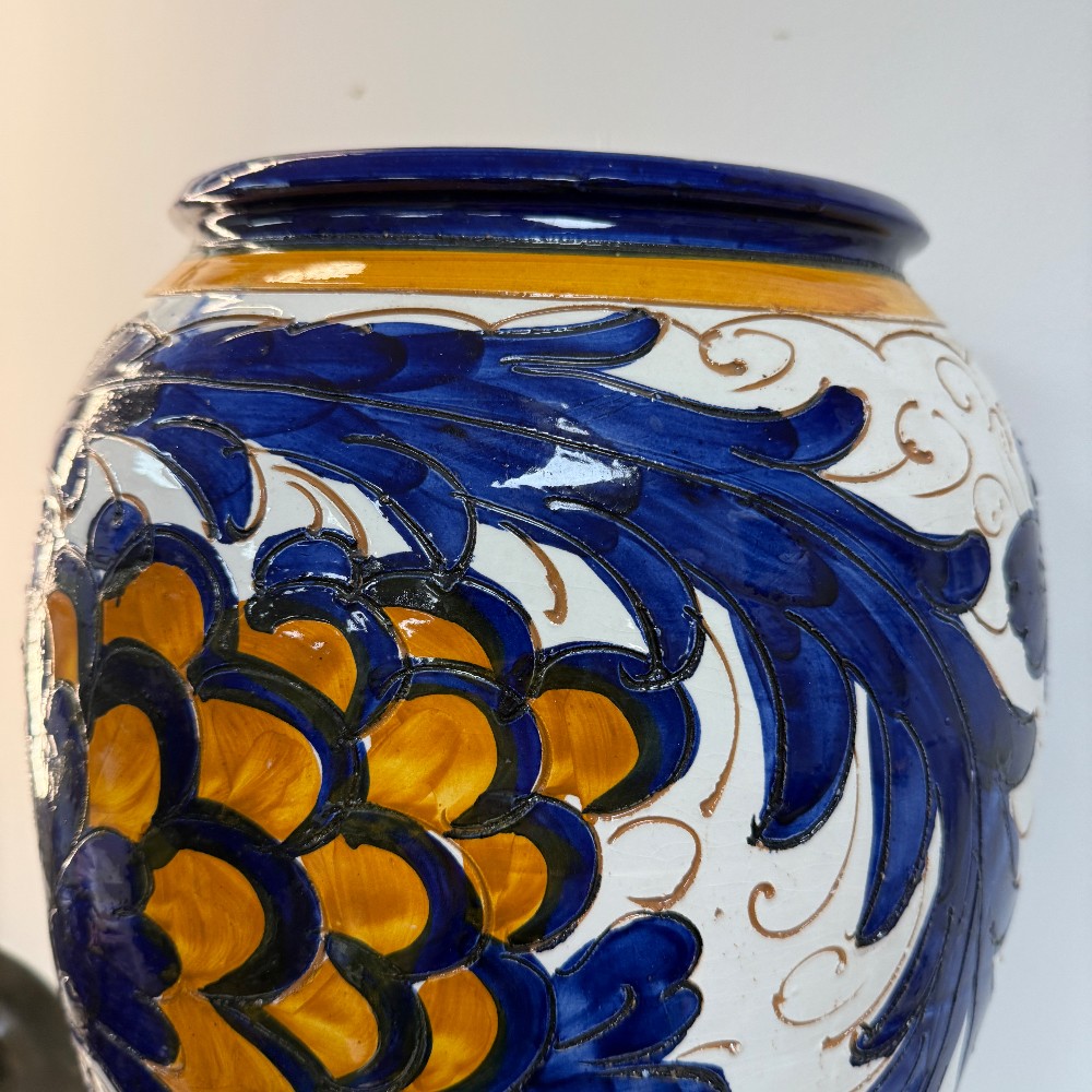 17" tall, 12" D Blue Rust Orange, Terra Cotta